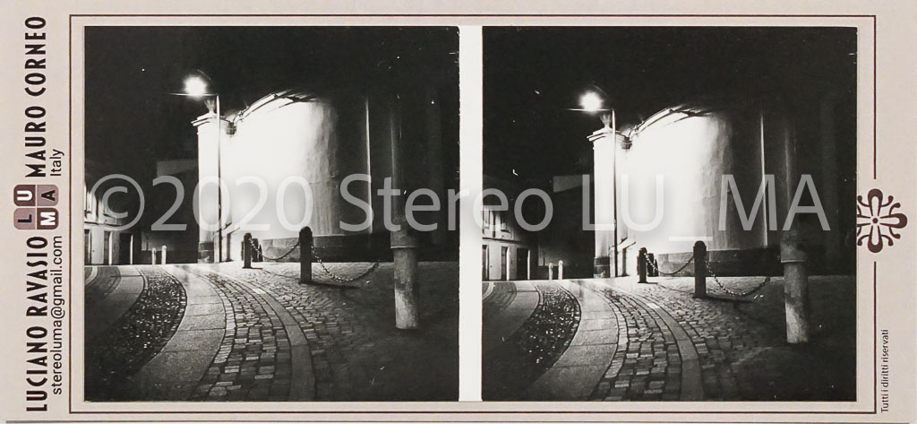 Immagini realizzate con fotocamera stereoscopica GOMZ Sputnik, pellicola Rollei Superpan 200 stampate su carta Ilford RC V Perla, montate su cartoncino LU.MA formato immagini 56x56