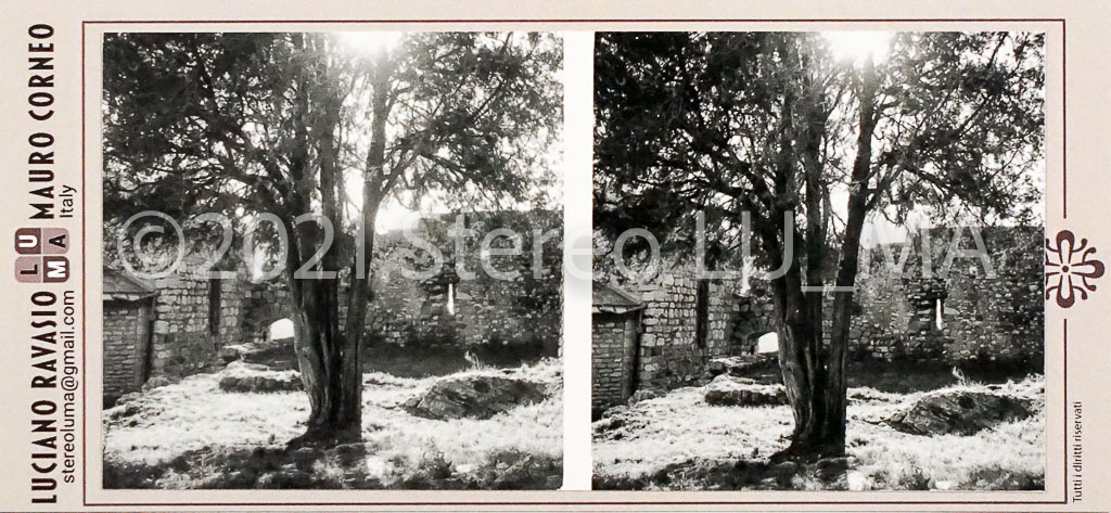 Immagini realizzate con fotocamera stereoscopica GOMZ Sputnik, pellicola Ilford FP4 stampate su carta Ilford Warmtone, montate su cartoncino LU.MA formato immagini 56x56
