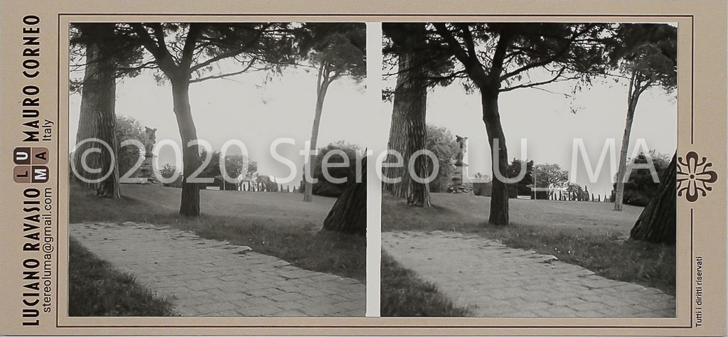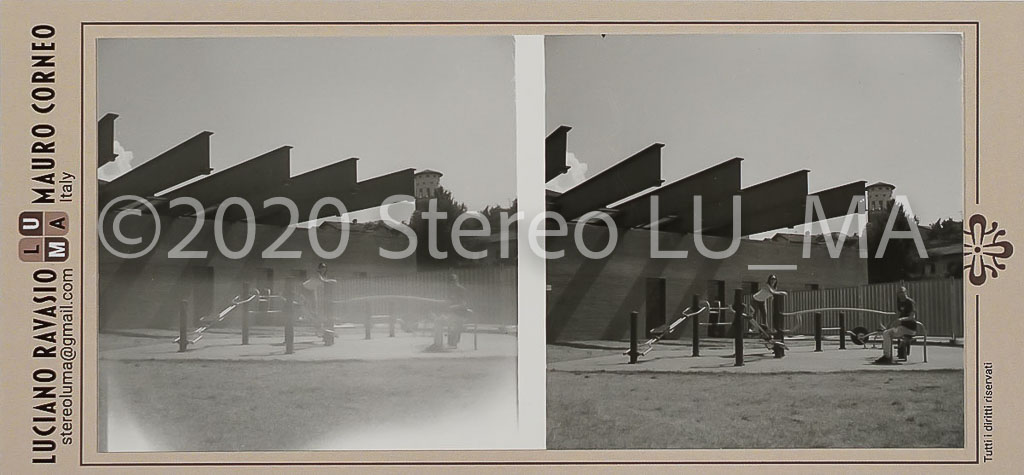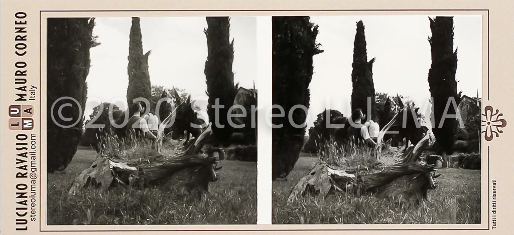 Immagini realizzate con fotocamera stereoscopica GOMZ Sputnik, pellicola Ilford FP4 stampate su carta Ilford Warmtone, montate su cartoncino LU.MA formato immagini 56x56