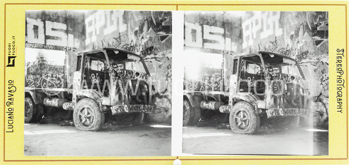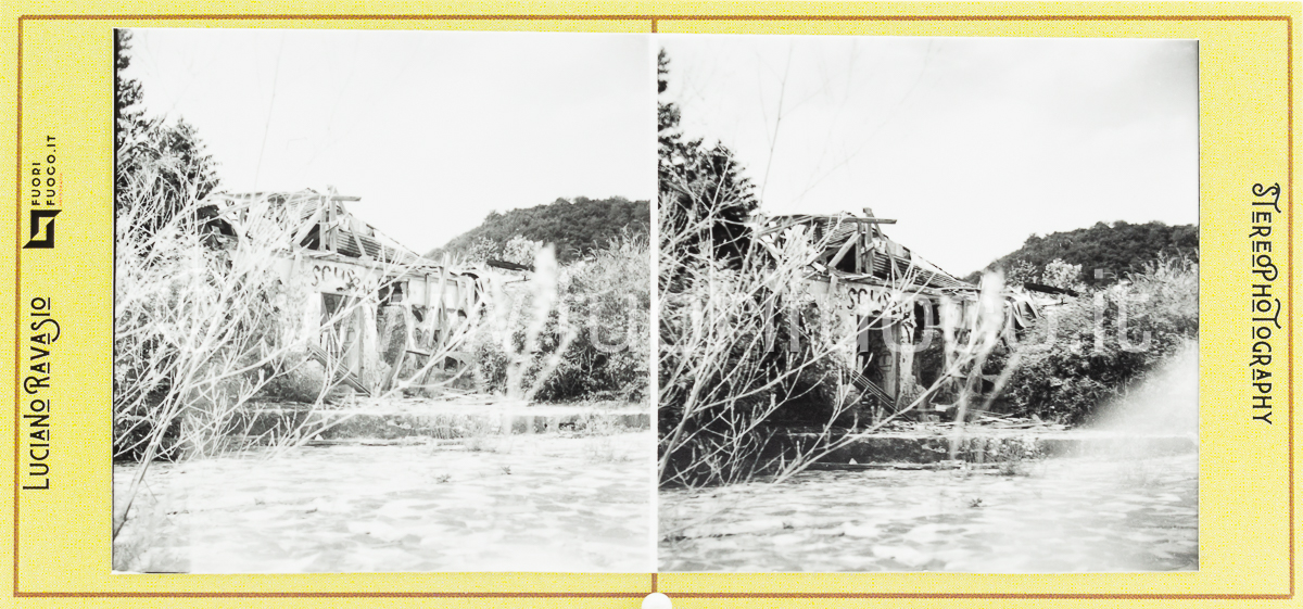 Immagini realizzate con fotocamera stereoscopica GOMZ Sputnik, pellicola HP5+ e Delta 400PRO stampate su carta ILFORD RC V Perla, montate su cartoncino FUORIFUOCO formato immagini 56x56