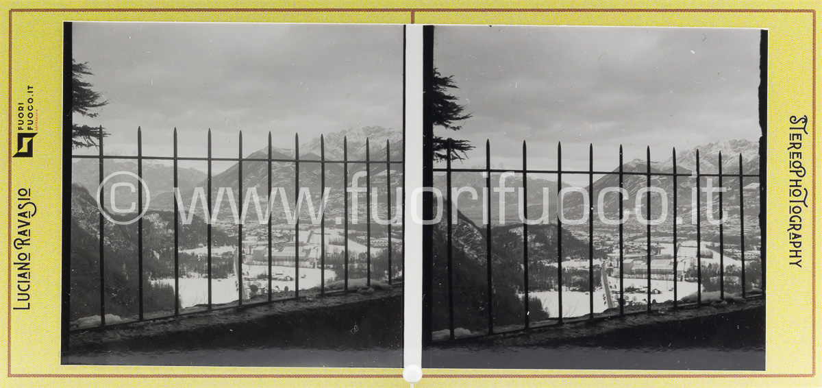 Immagini realizzate con fotocamera stereoscopica GOMZ Sputnik, pellicola ILFORD FP4+ e Ilford HP5 stampate su carta ILFORD RC WARMTONE montate su cartoncino FUORIFUOCO formato immagini 56x56