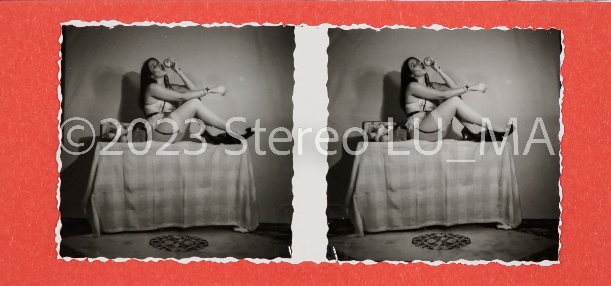 Immagini realizzate con fotocamera stereoscopica GOMZ Sputnik, pellicola Rollei SUPERPAN 200 stampate su carta Ilford Warmtone, montate su cartoncino ROSSO formato immagini 56x56