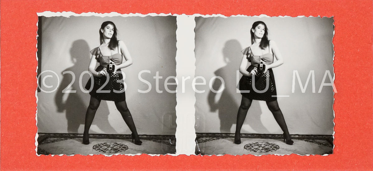 Immagini realizzate con fotocamera stereoscopica GOMZ Sputnik, pellicola Rollei SUPERPAN 200 stampate su carta Ilford Warmtone, montate su cartoncino ROSSO formato immagini 56x56