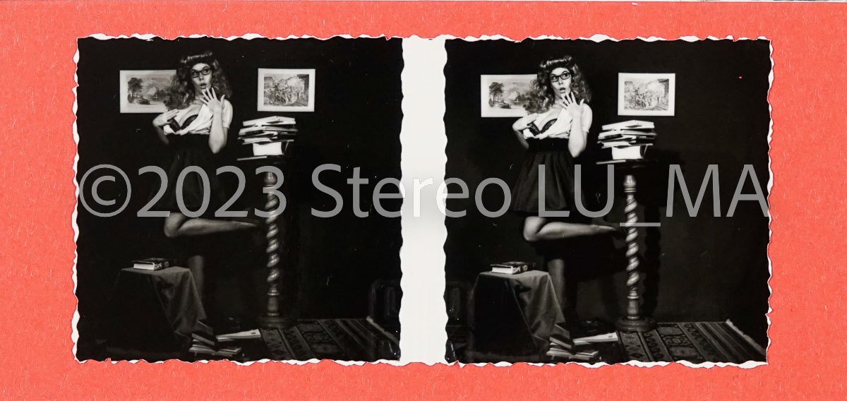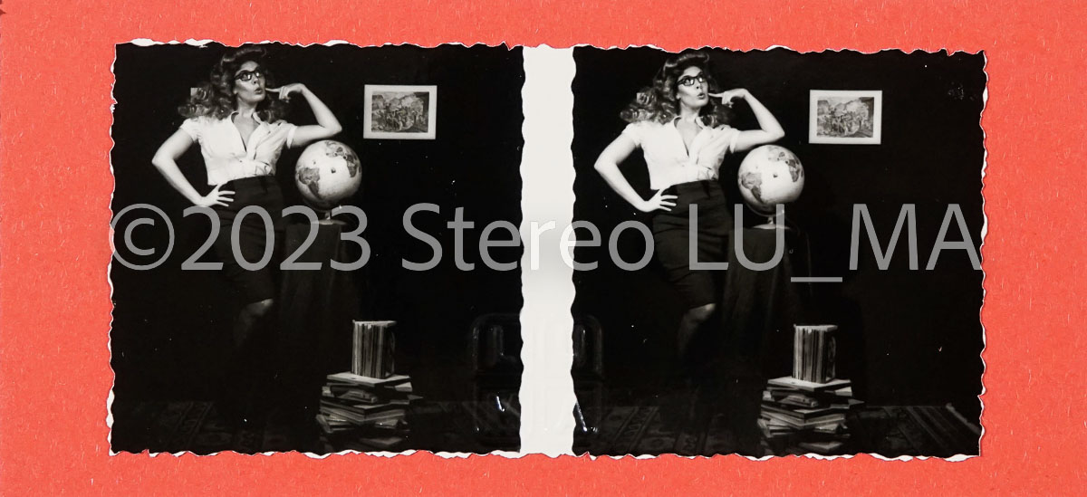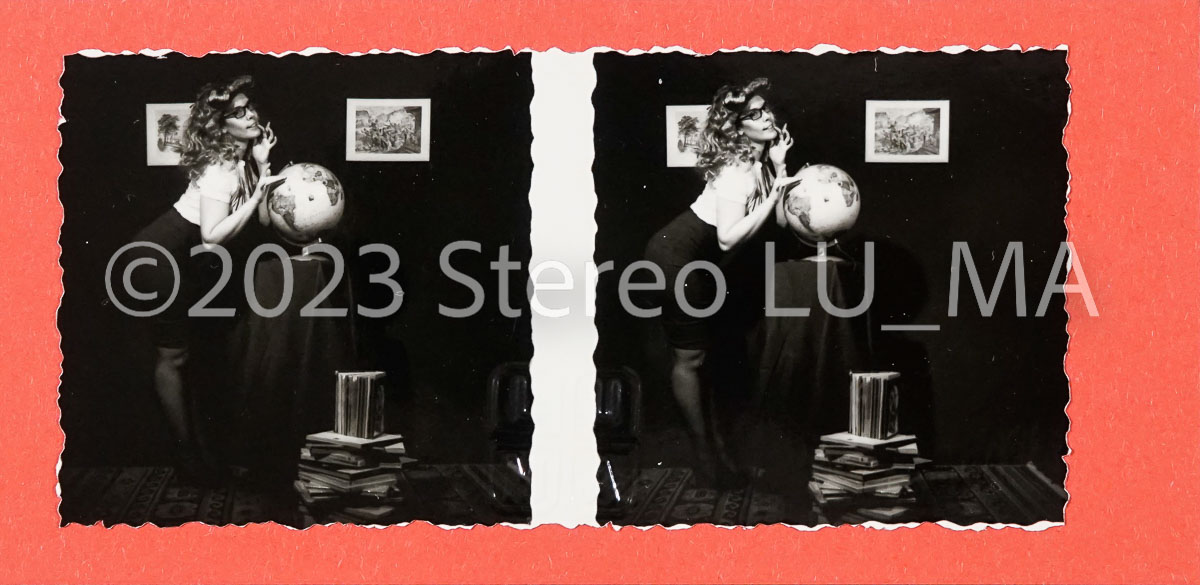 Immagini realizzate con fotocamera stereoscopica GOMZ Sputnik, pellicola Rollei SUPERPAN 200 stampate su carta Ilford Warmtone, montate su cartoncino ROSSO formato immagini 56x56