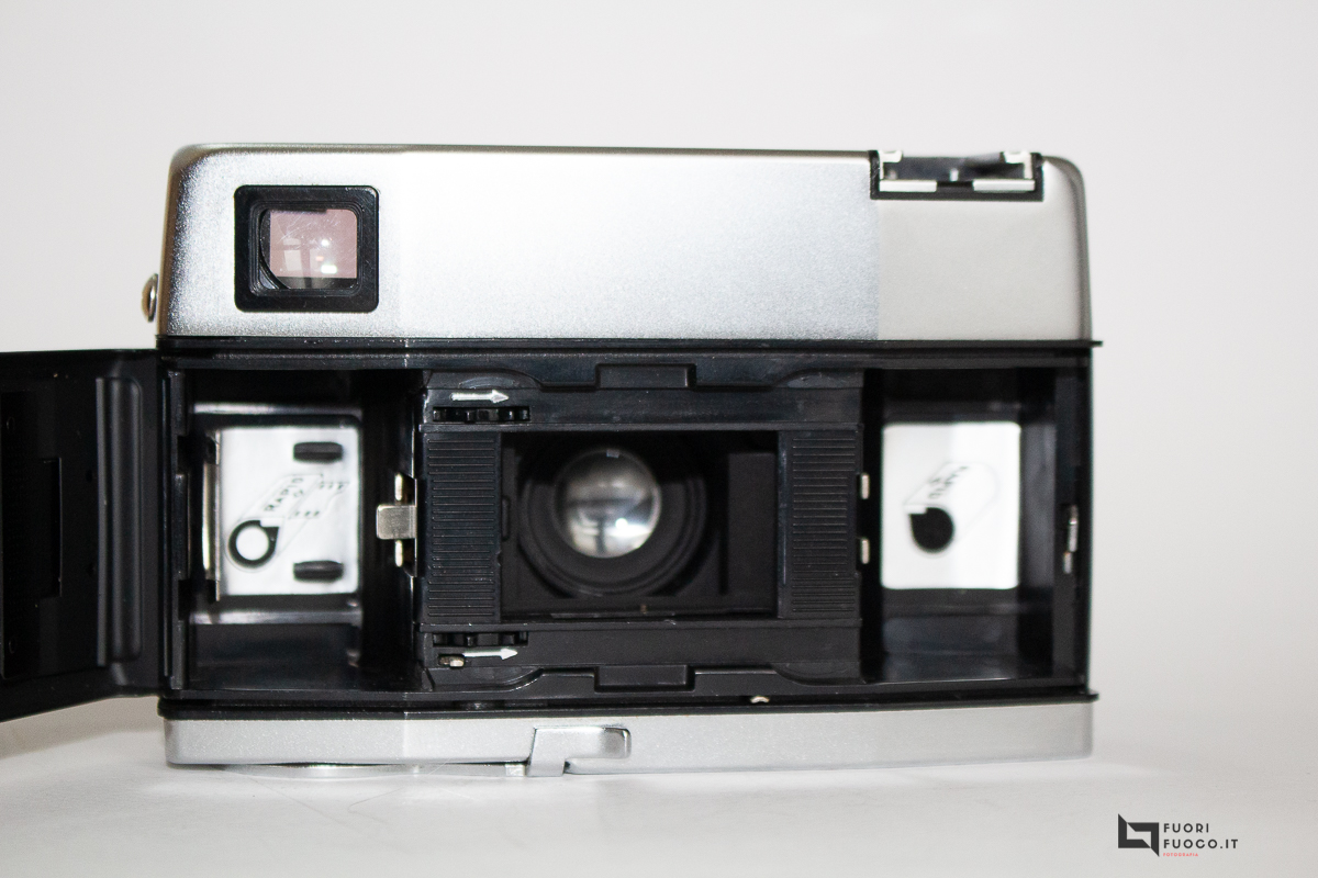 La leva di avanzamento della pellicola si trova sul fondello, inoltre è presente l’attacco per il treppiede e anche il contafotogrammi.