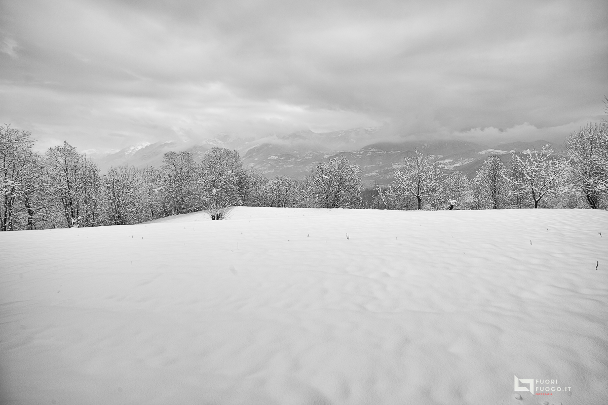 Il paesaggio cambia radicalmente, nascono nuove prospettive di visione, la coltre bianca copre e scopre allo stesso temp.