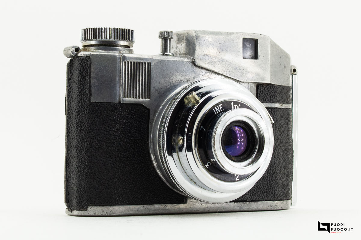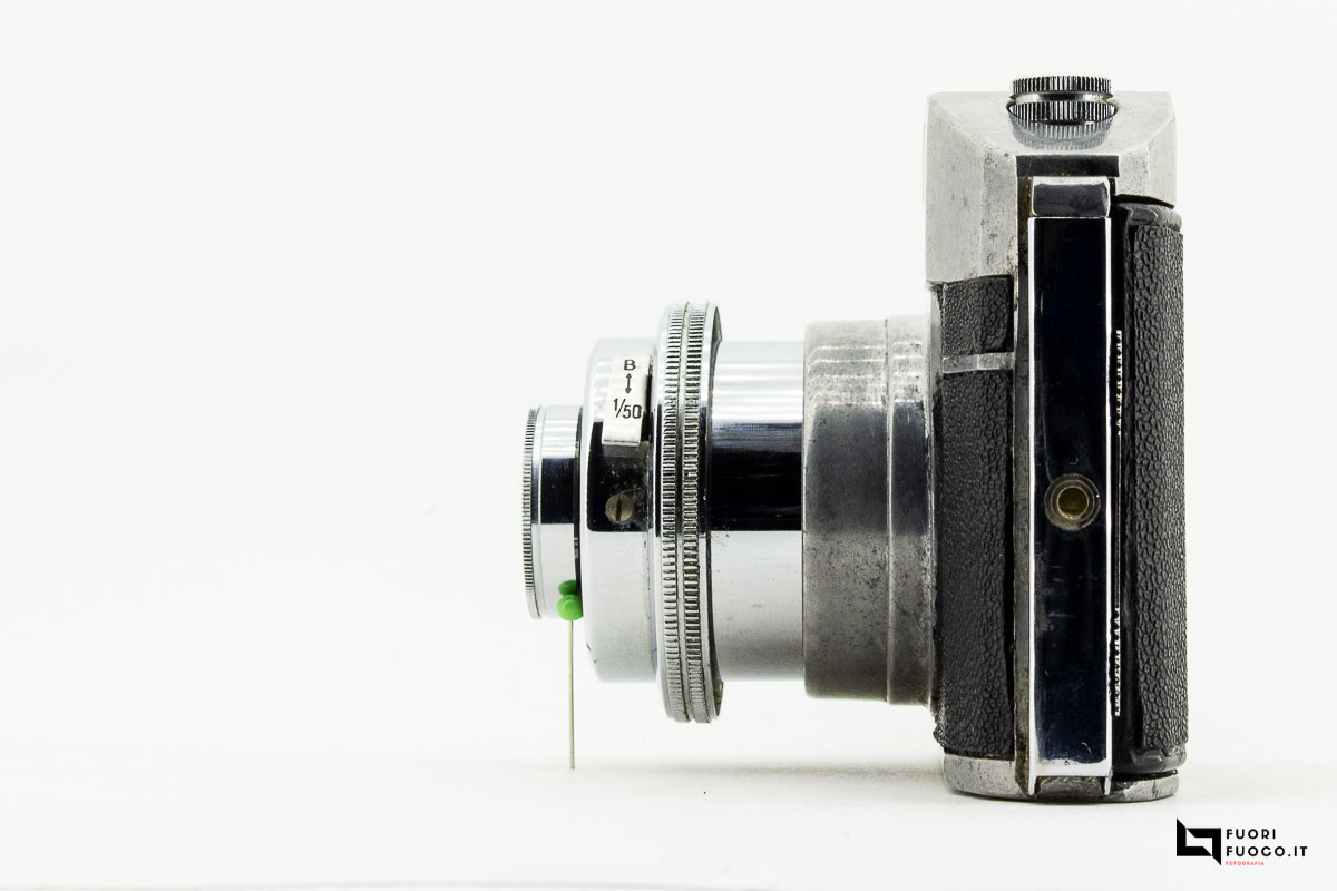L’otturatore di tipo rotativo chiude ad un tempo di 1/30 di secondo oppure in posa B.