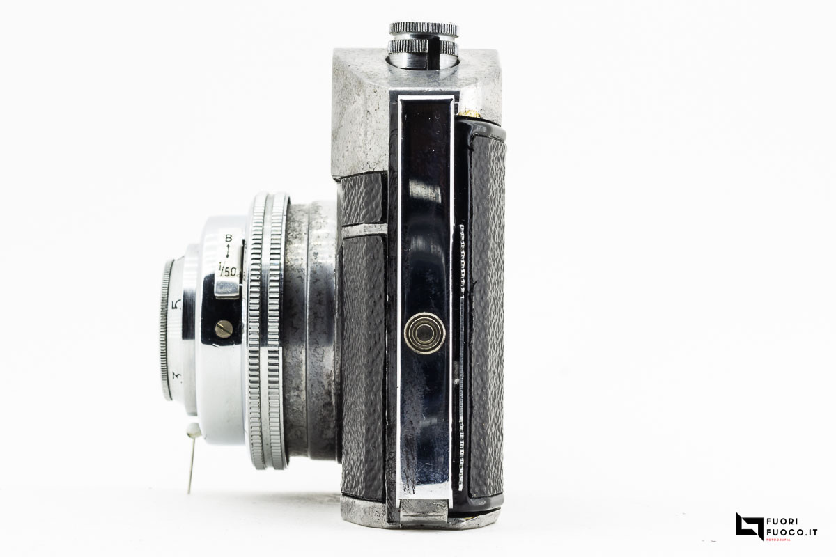 L’otturatore di tipo rotativo chiude ad un tempo di 1/30 di secondo oppure in posa B.