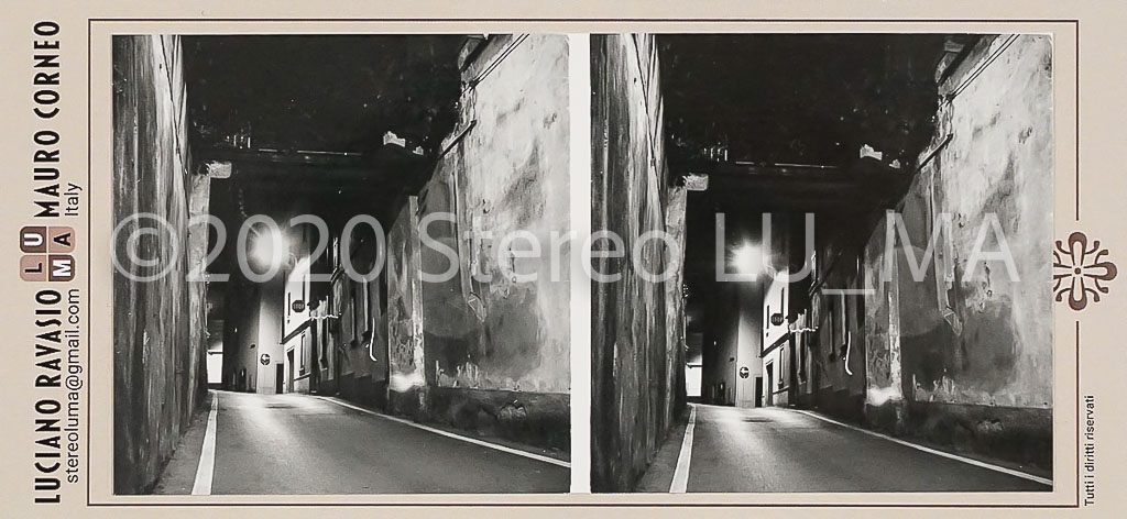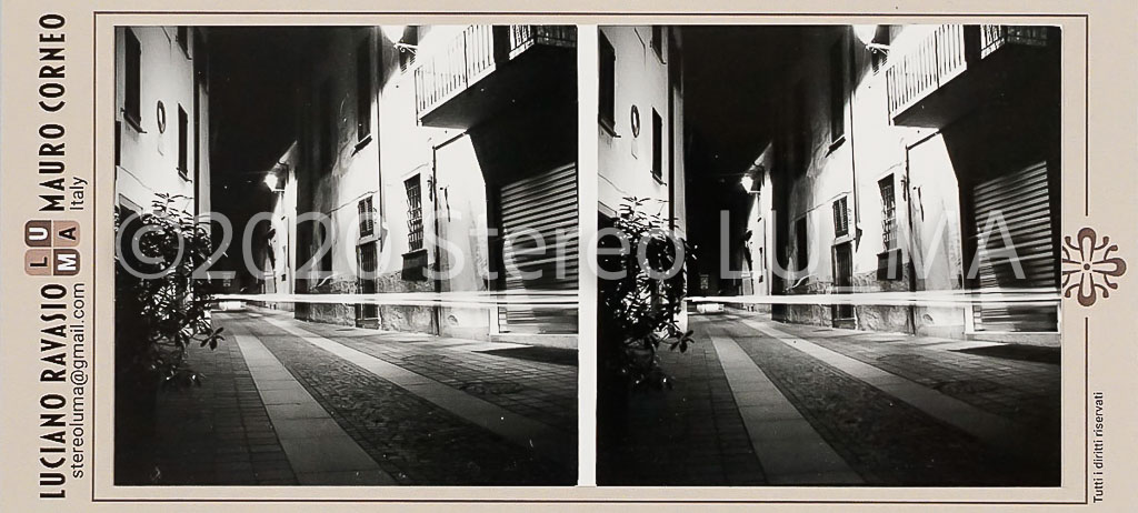 Immagini realizzate con fotocamera stereoscopica GOMZ Sputnik, pellicola Ilford HP5+ stampate su carta Rollei Vintage 311 Glossy, montate su cartoncino LU.MA formato immagini 56x56