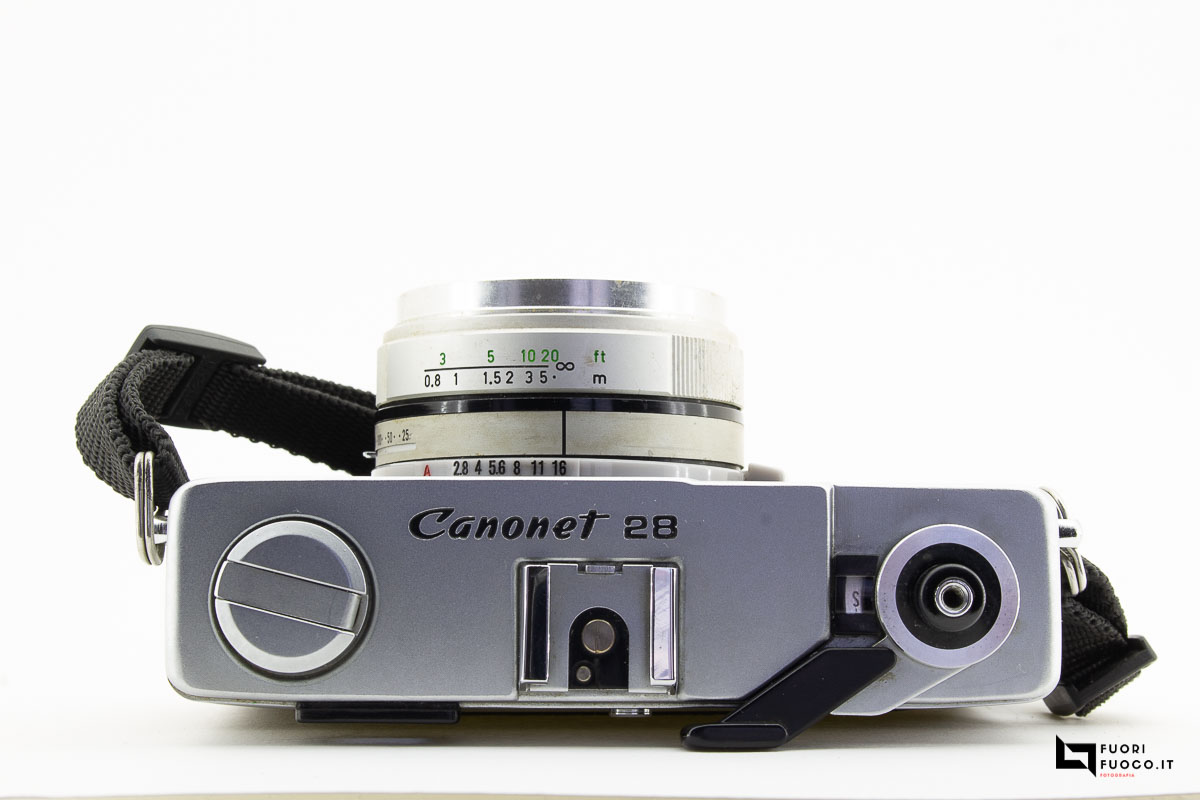 La fotocamera a telemetro 35mm Canonet 28, introdotta nel 1971, è una versione più economica della famosa Canonet QL17, ma senza la funzione “Quick Load”.