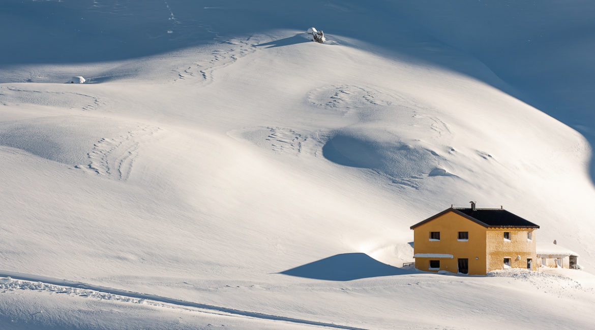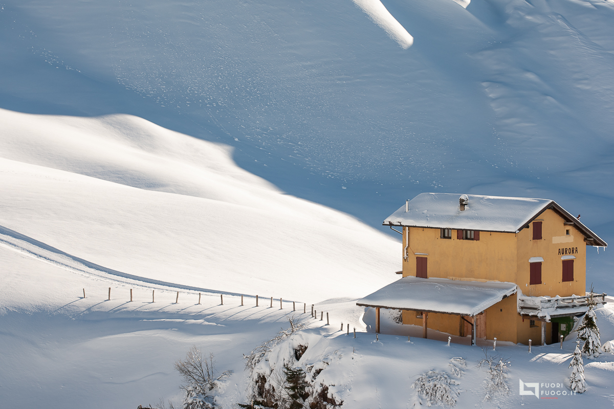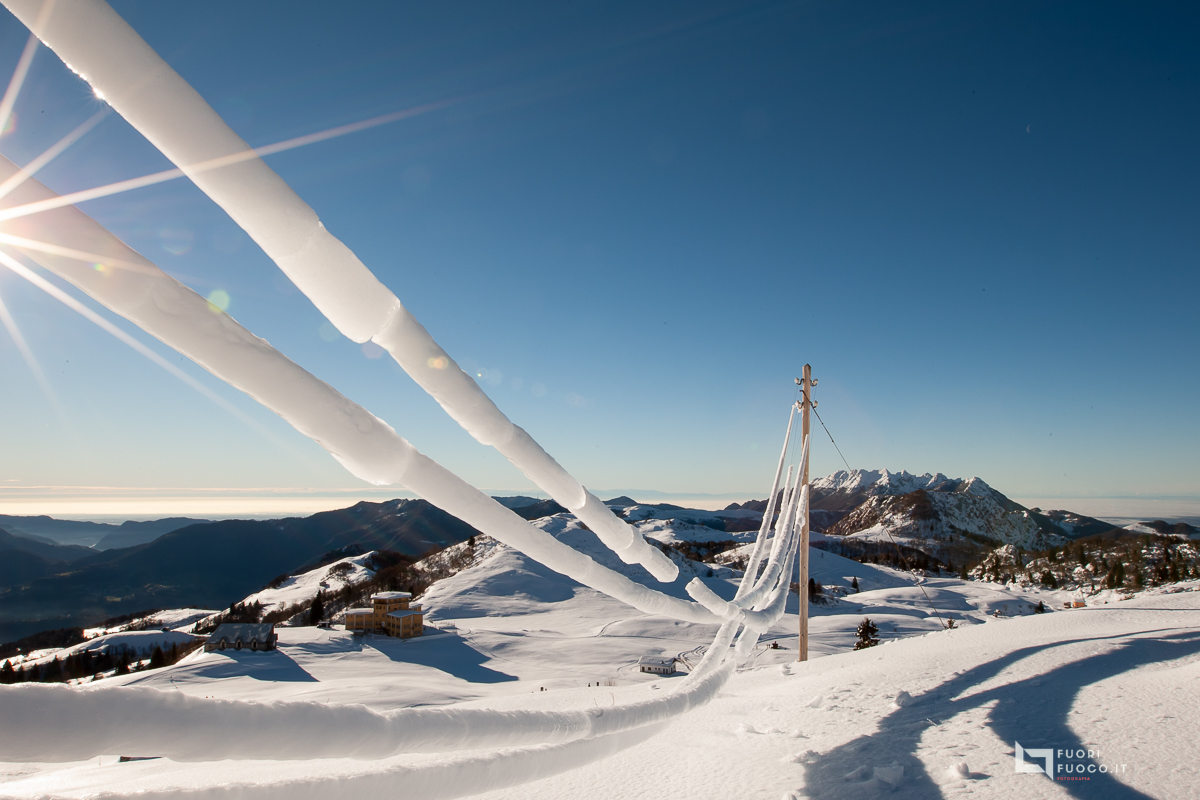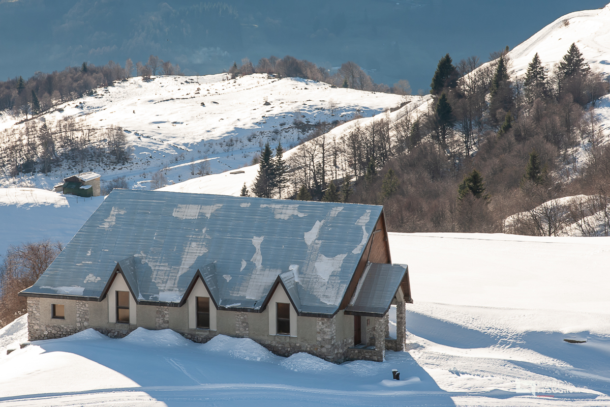 Dapprima raggiungo le baite del faggio, poi il sentiero si fa ripido e si inoltra nel fitto bosco , dove tuttavia non si trova neve, ma ghiaccio sull’ultimo tratto, prima di arrivare, (dopo circa un’oretta e mezza e 700 mt di dislivello) alla vecchia baita degli alpini.