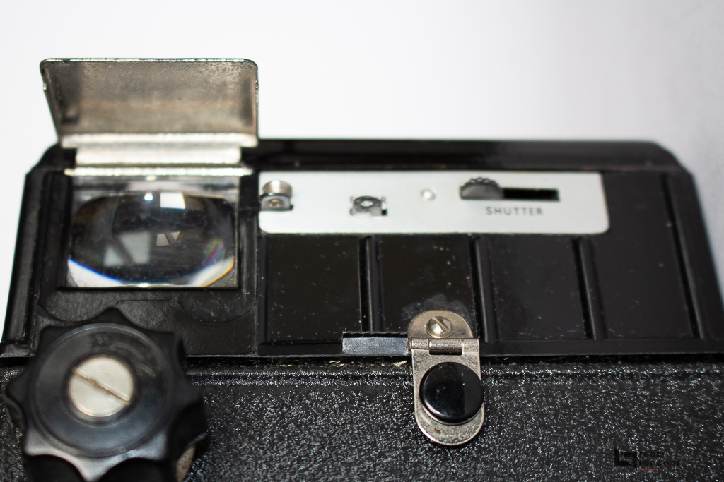 Sul lato destro, impugnando la fotocamera troviamo la levetta che comanda l’otturatore, un’altra piccola leva per l’inserimento del filtro giallo, ed inoltre il meccanismo per inserire il blocco dell’otturatore ed impostare la posa B.