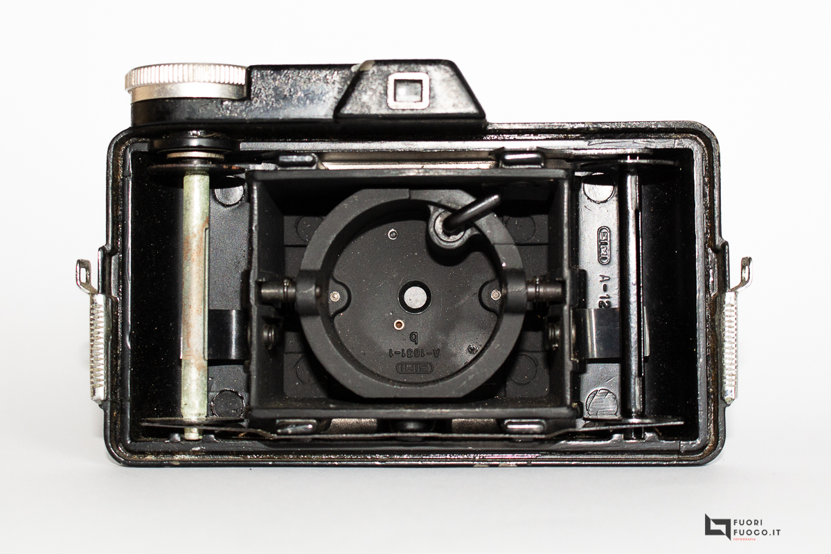 L’otturatore un modello semplice a ghigliottina, permette un unico tempo di scatto a circa 1/75 secondo.
