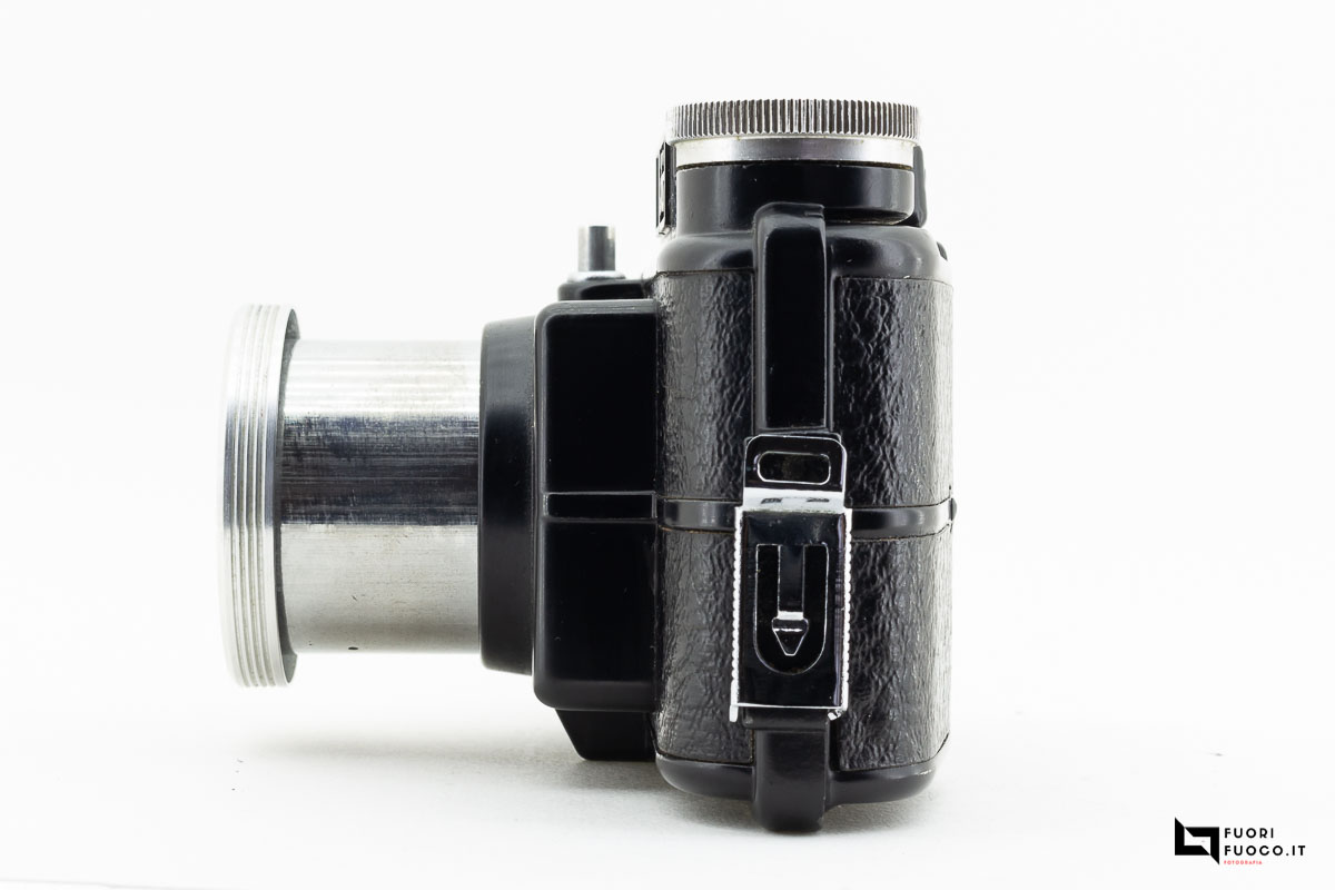 La messa fuoco è fissa da circa due metri sino all’infinito. Per poter scattare una fotografia è necessario estrarre il tubo estraibile.