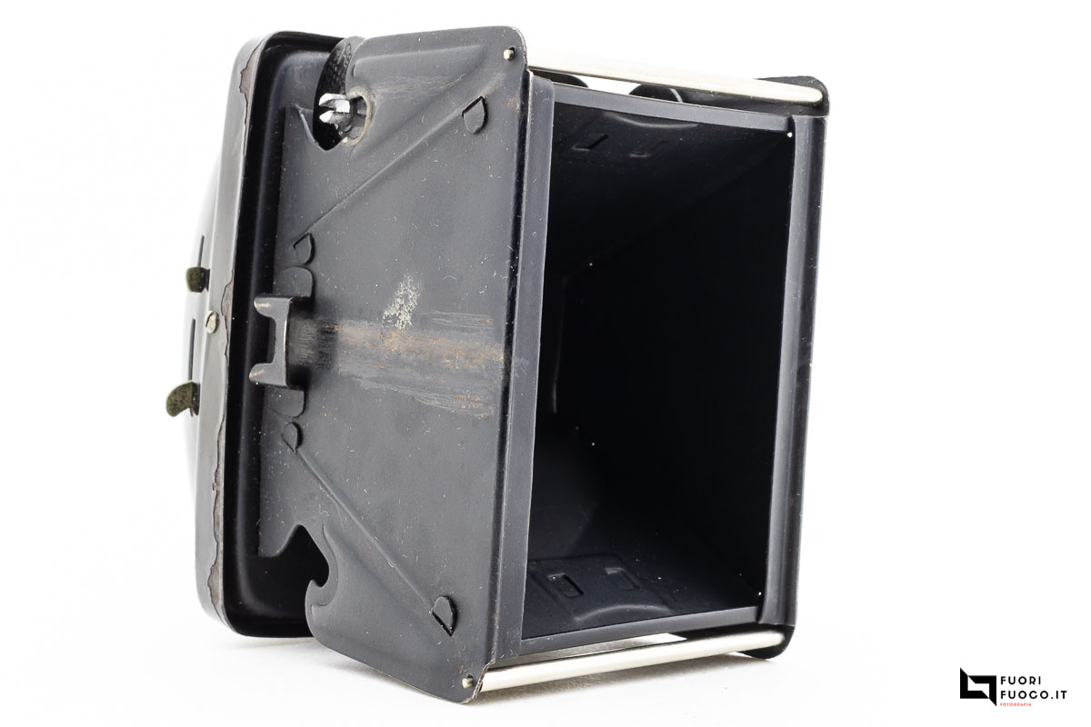 Il mirino abbastanza scomodo e poco nitido si trova sulla parte superiore della fotocamera. Non sono presente inoltri attacchi per scatto flessibile ne per l’utilizzo del treppiede.