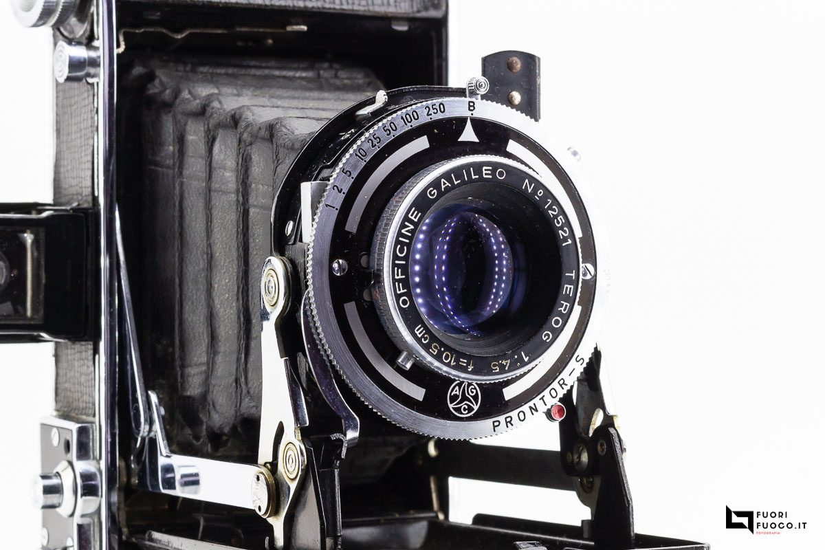 L’otturatore è un “Prontor S” che chiude  tra i tempi di 1 secondo a 1/250 più posa B