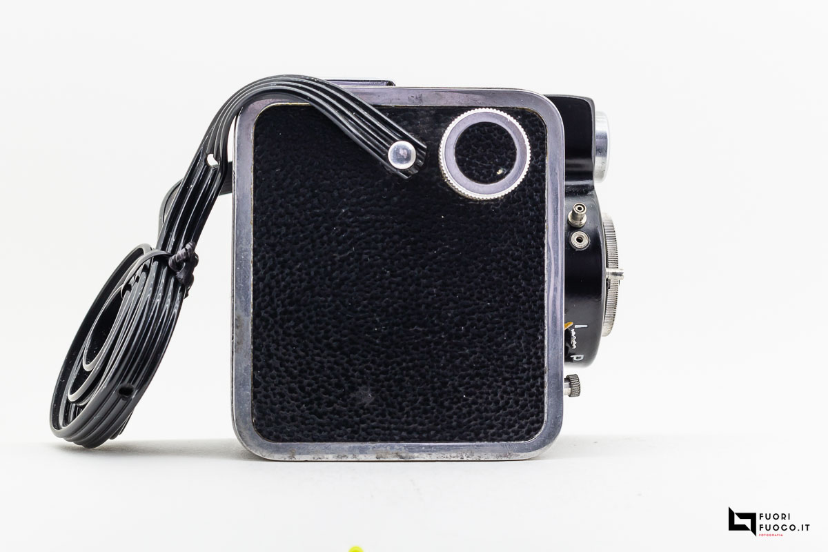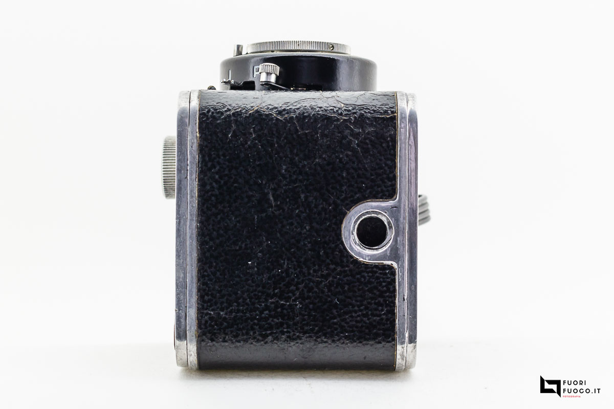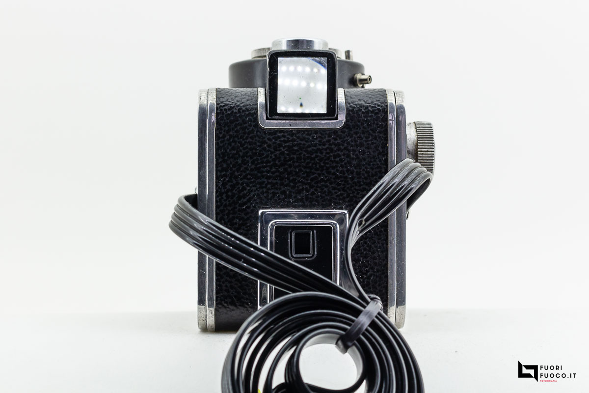 In particolare non è presente l’attacco per lo scatto flessibile, per l’inquadratura sono presenti due mirini, una a riflessione e uno a traguardo che si trovano sulla parte superiore della fotocamera.
