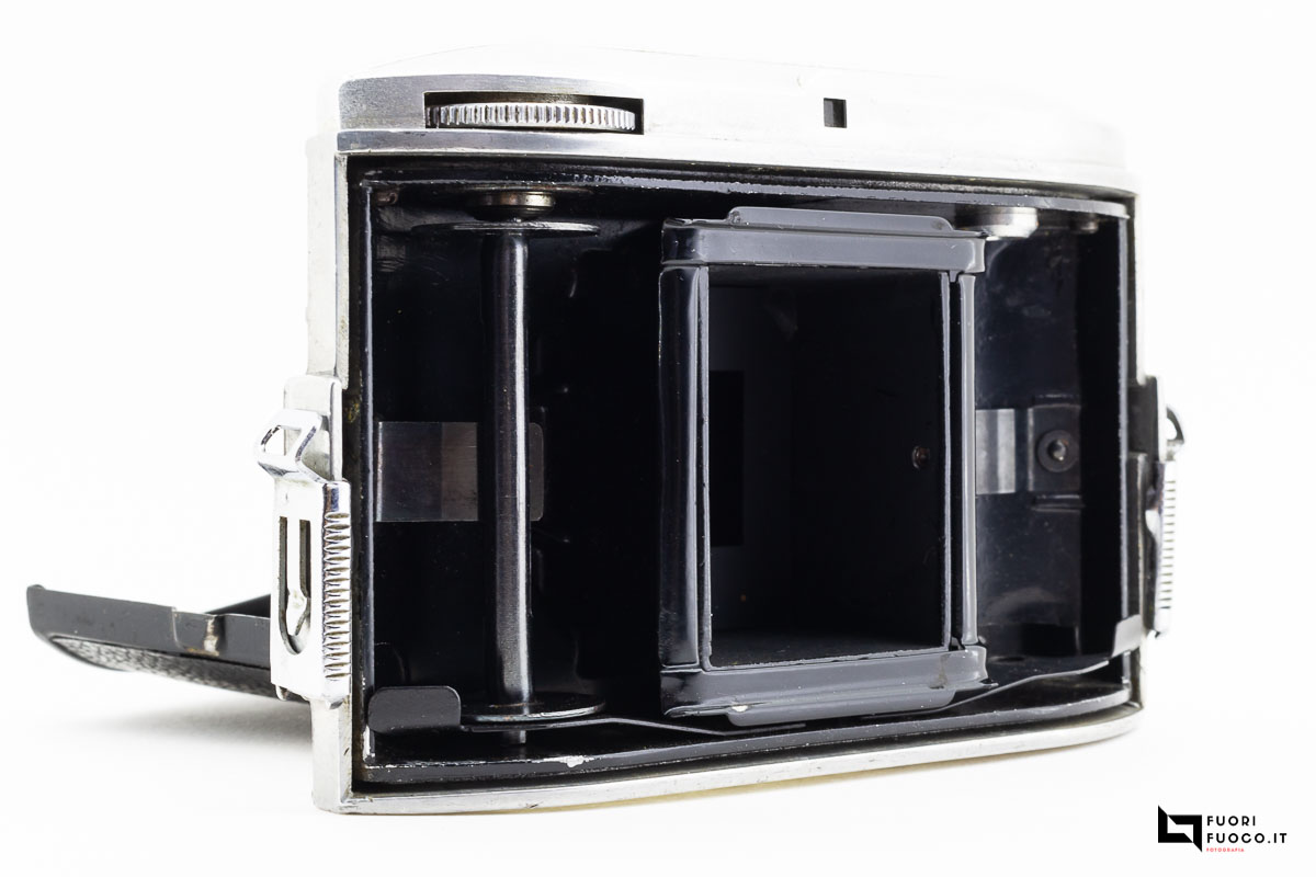 Il retro in particolare ha due finestre rosse per ospitare il formato a mezzo fotogramma 127