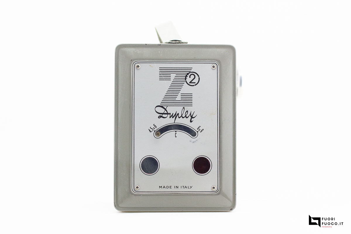 La Ferrania Zeta Duplex 2 (Grey) è una fotocamera di tipo Box, costruita in metallo e rivestita di cartone similpelle nero.