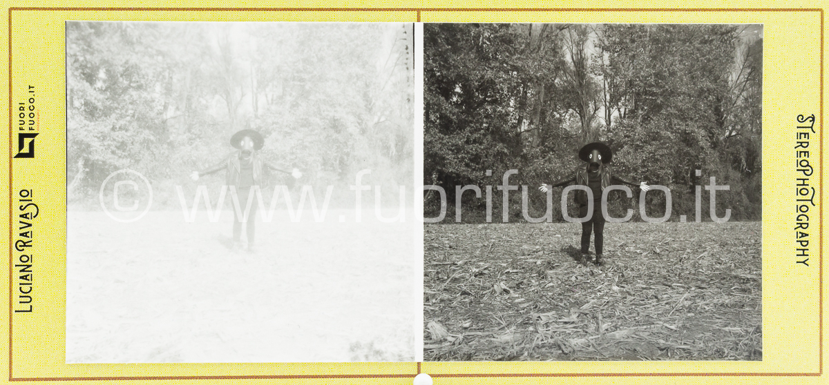 Immagini realizzate con fotocamera stereoscopica GOMZ Sputnik, pellicola FOMAPAN 400 stampate su carta ILFORD FB WARMTONE montate su cartoncino FUORIFUOCO formato immagini 56x56