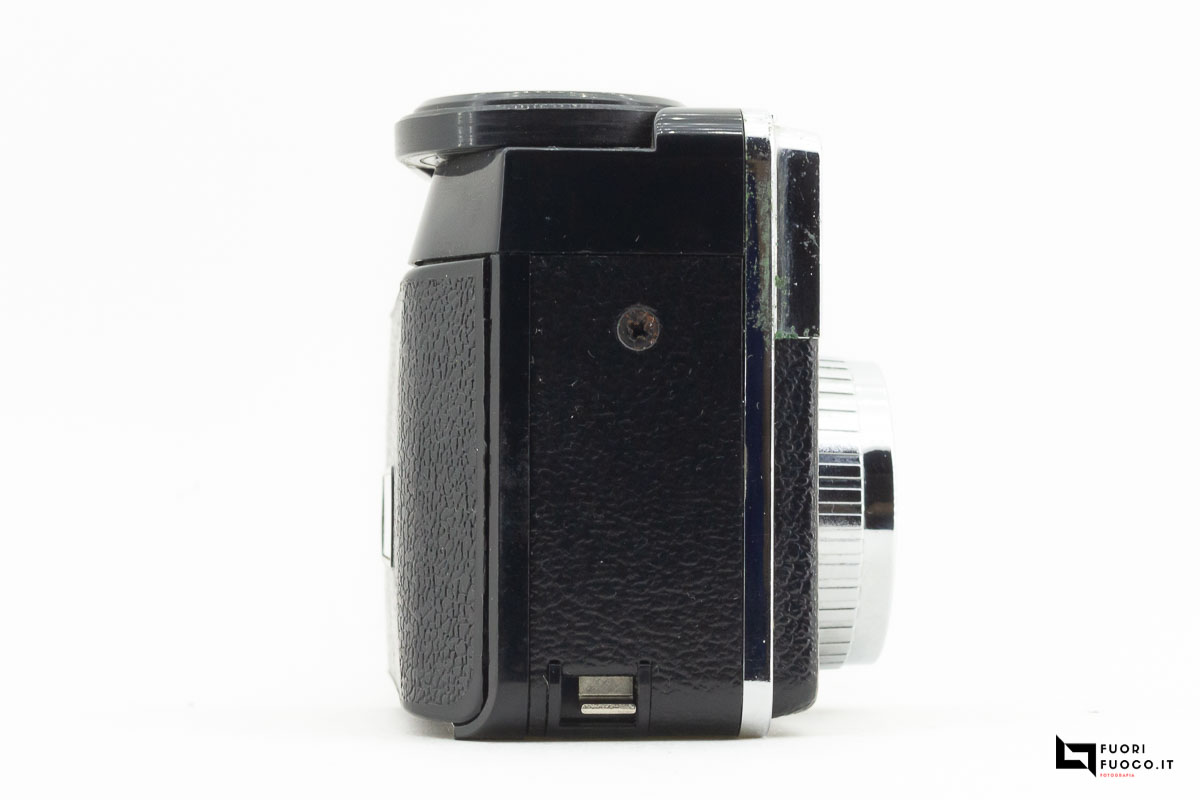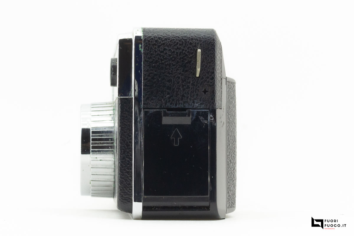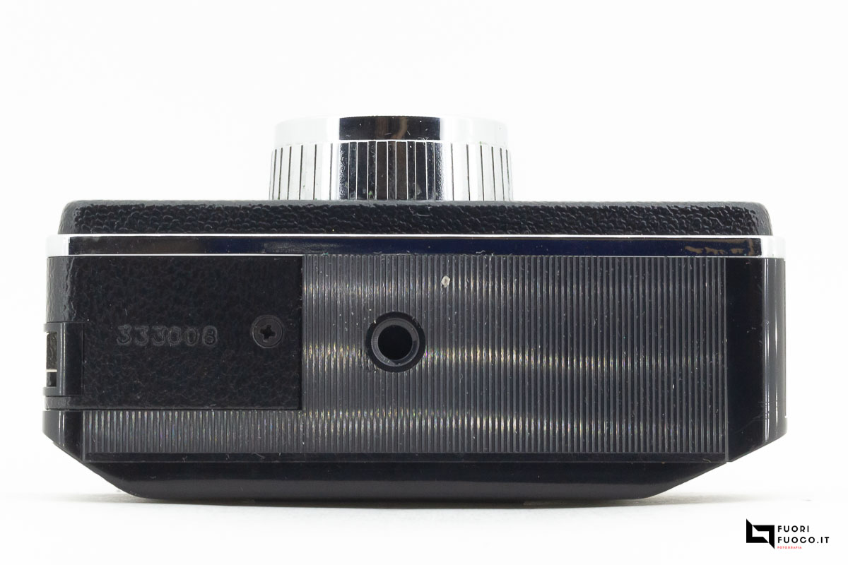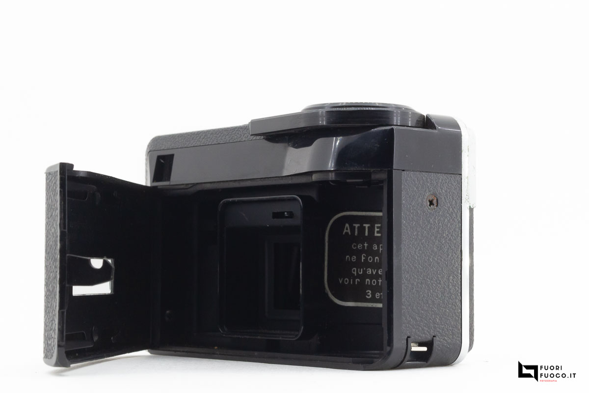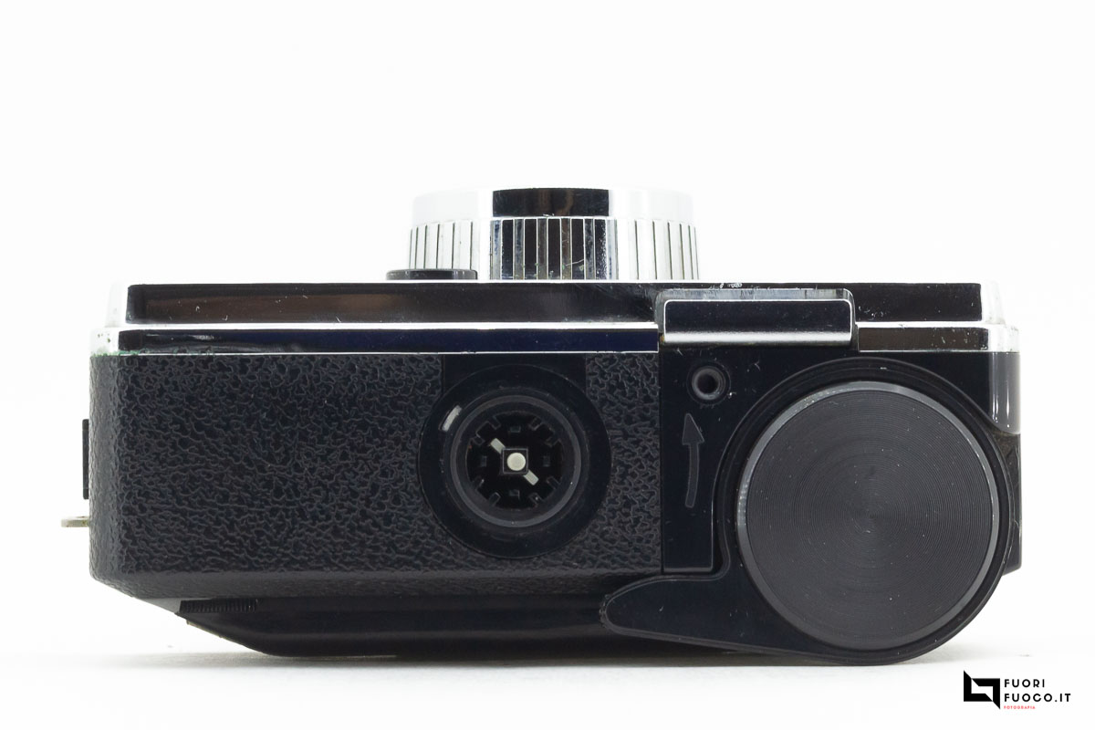 Nella parte posteriore è presente lo sportellino che permette l’accesso al vano cartuccia che contiene la pellicola in formato 126 in caricatori comunemente denominati Kodapak.