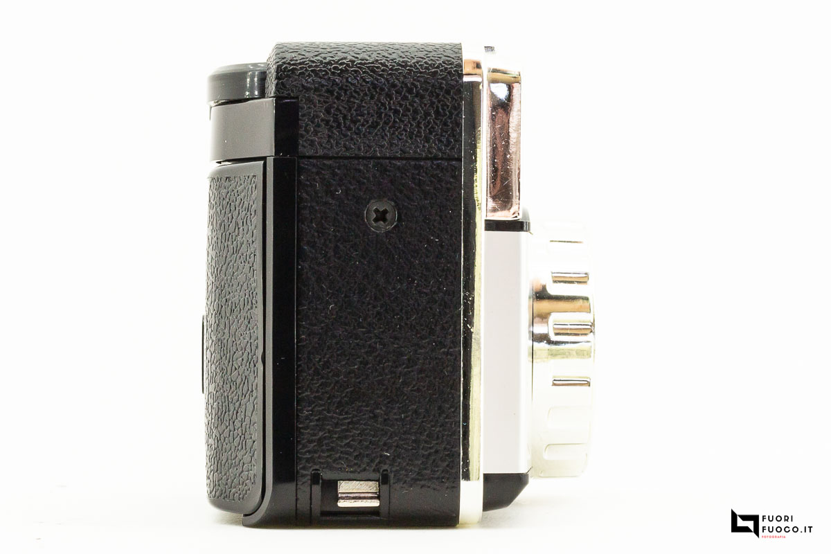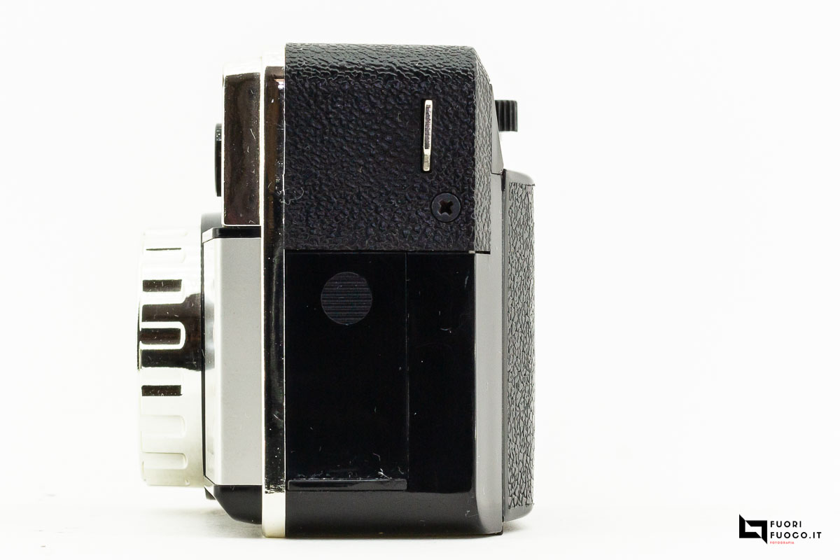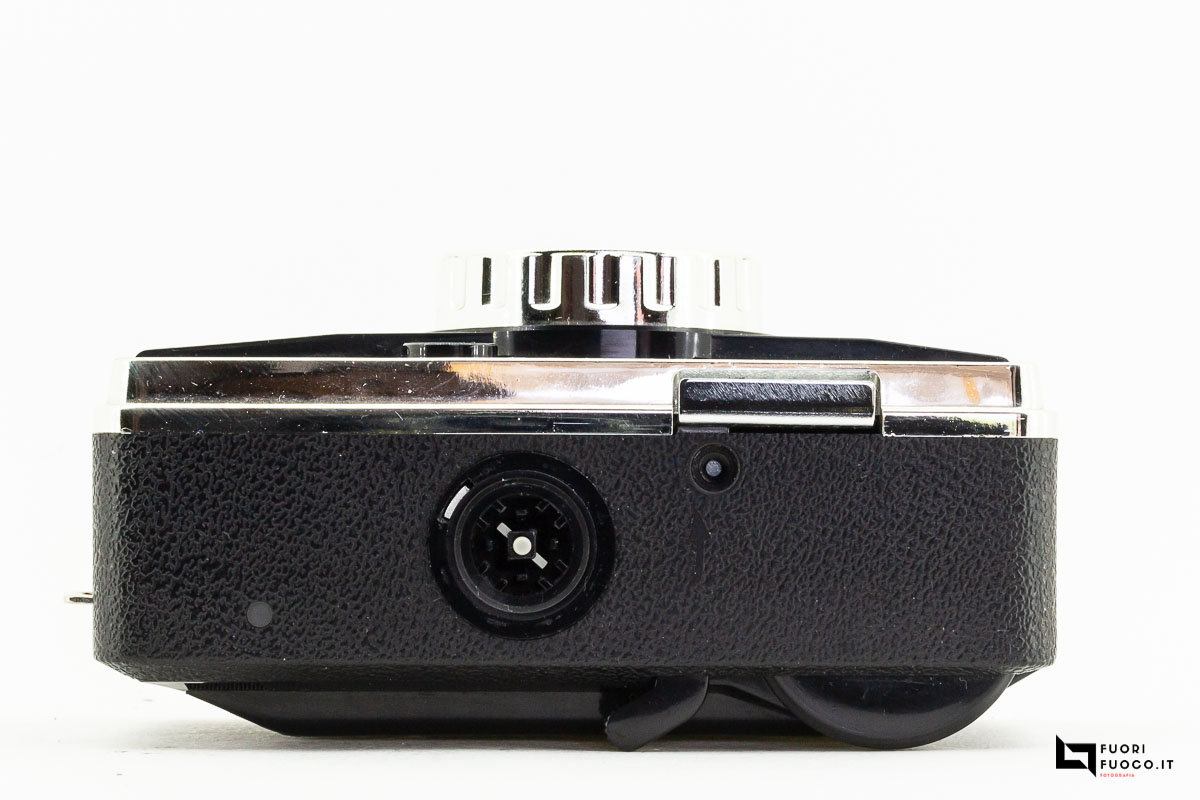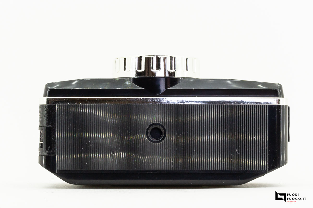 Nella parte posteriore è presente lo sportellino che permette l’accesso al vano cartuccia che contiene la pellicola  in formato 126 in caricatori comunemente denominati Kodapak.