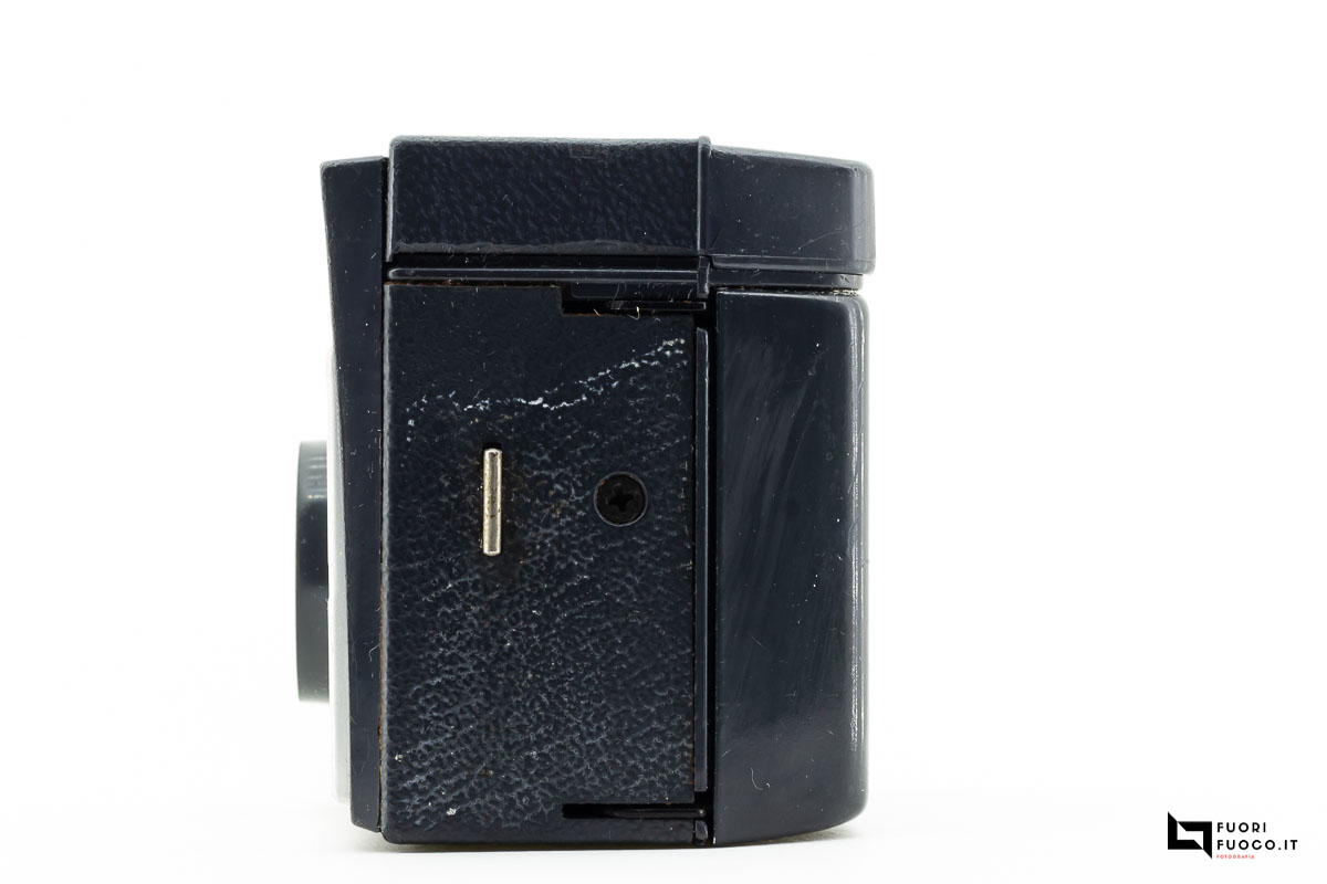 L’avanzamento della pellicola avviene tramite lo spostamento in avanti di una leva sulla parte destra della fotocamera.