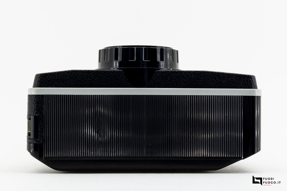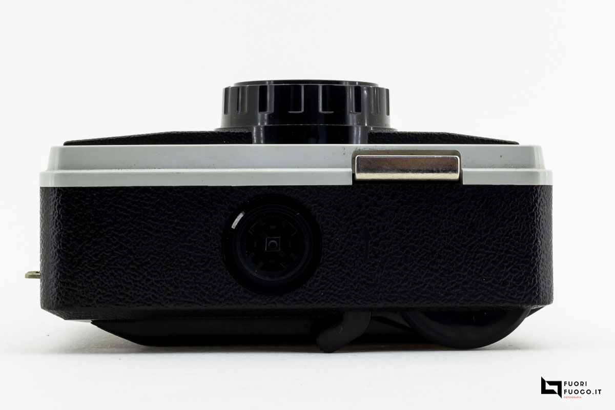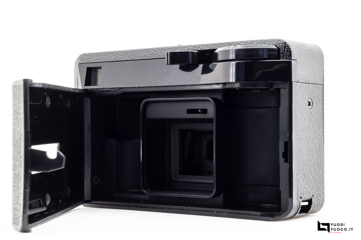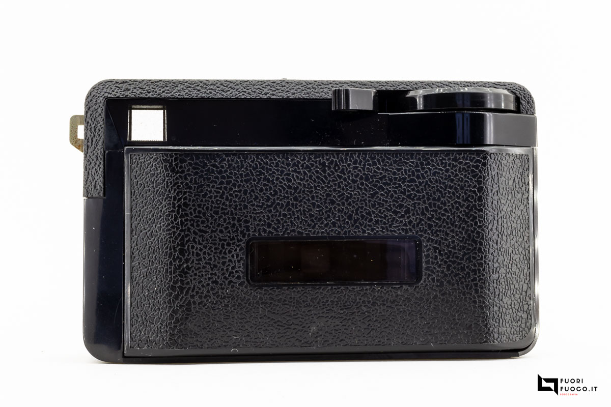 Nella parte posteriore è presente lo sportellino che permette l’accesso al vano cartuccia che contiene la pellicola in formato 126 in caricatori comunemente denominati Kodapak.