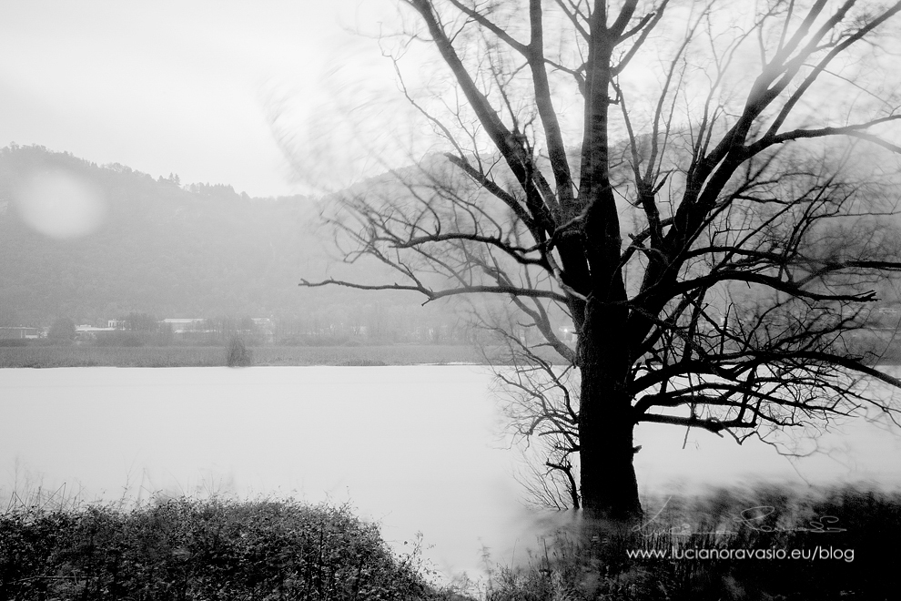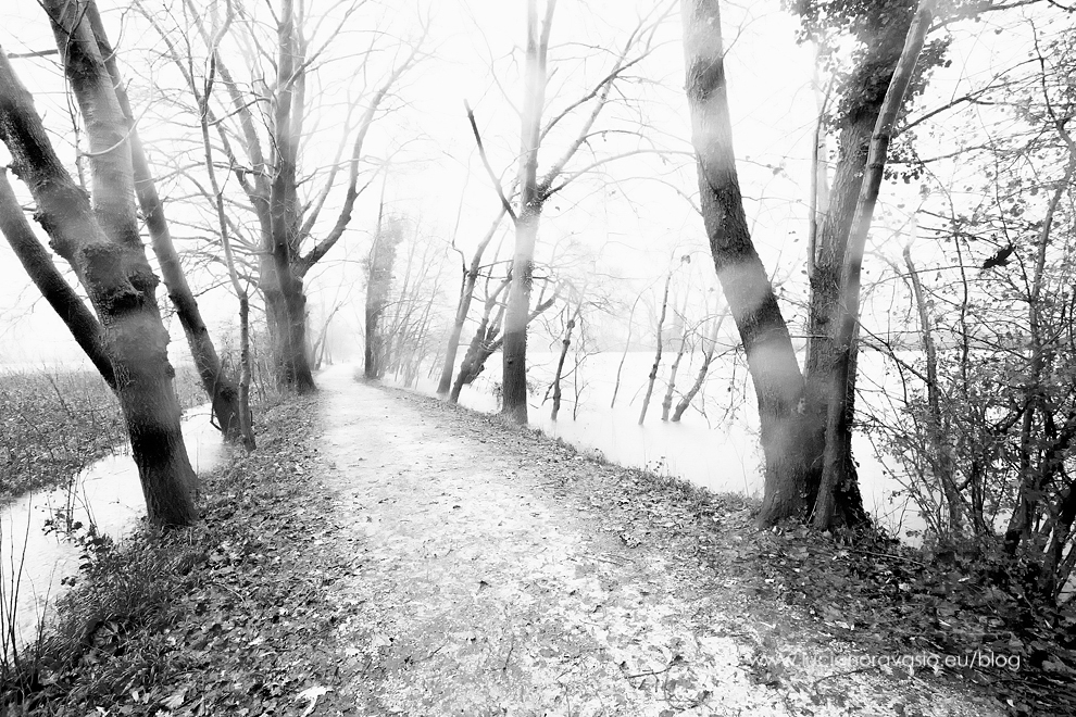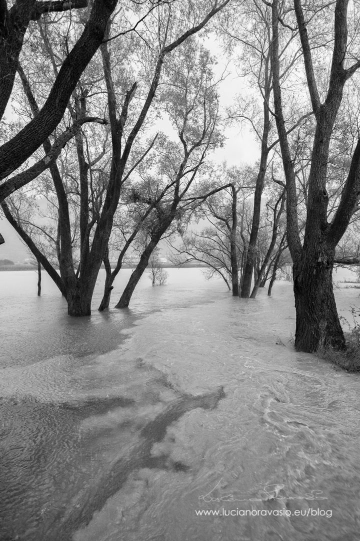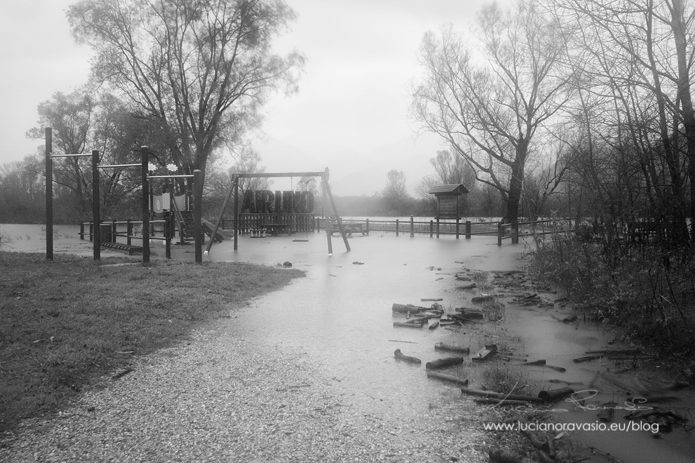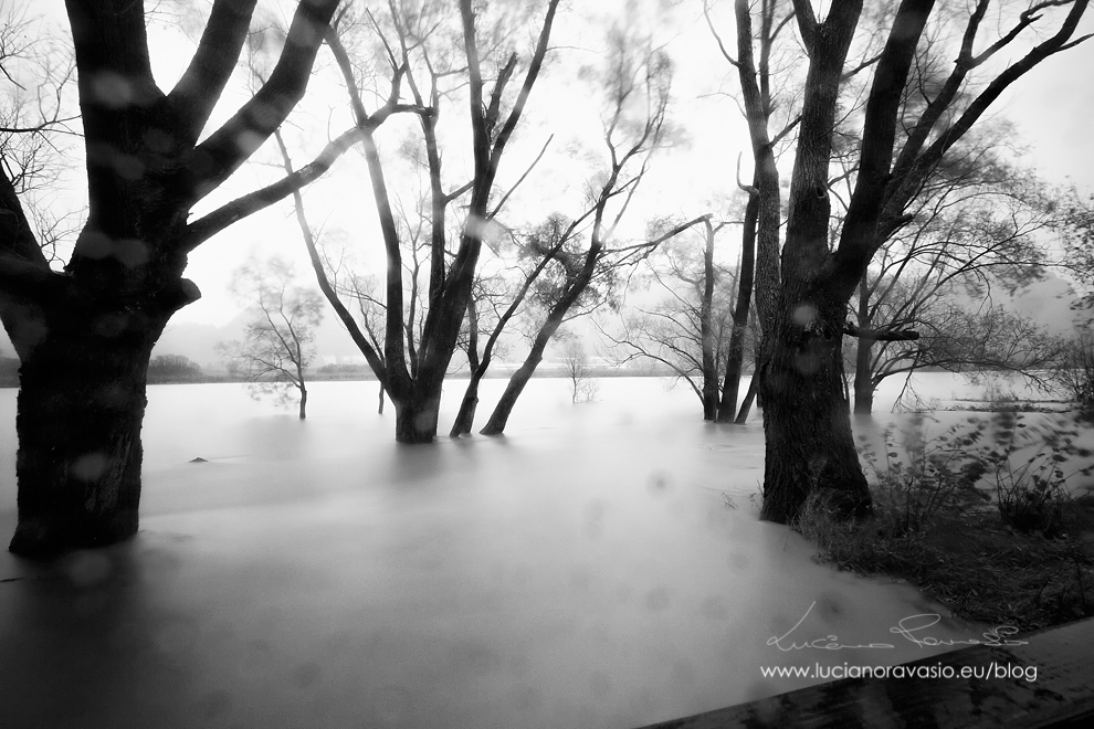 Ho approfittato ieri della pioggia incessante e del cielo plumbeo per una passeggiata sugli argini oramai in alcuni tratti violati dalla piena.