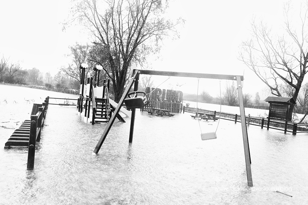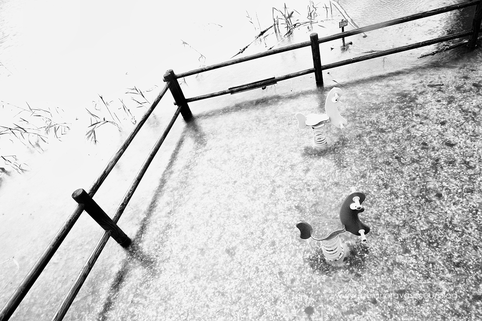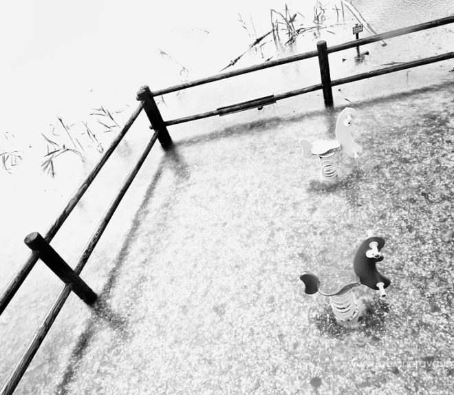 Le nostre strutture, ma anche gli alberi e i sentieri d’argine, lambiti da un acqua bianca e alla vista piatta.