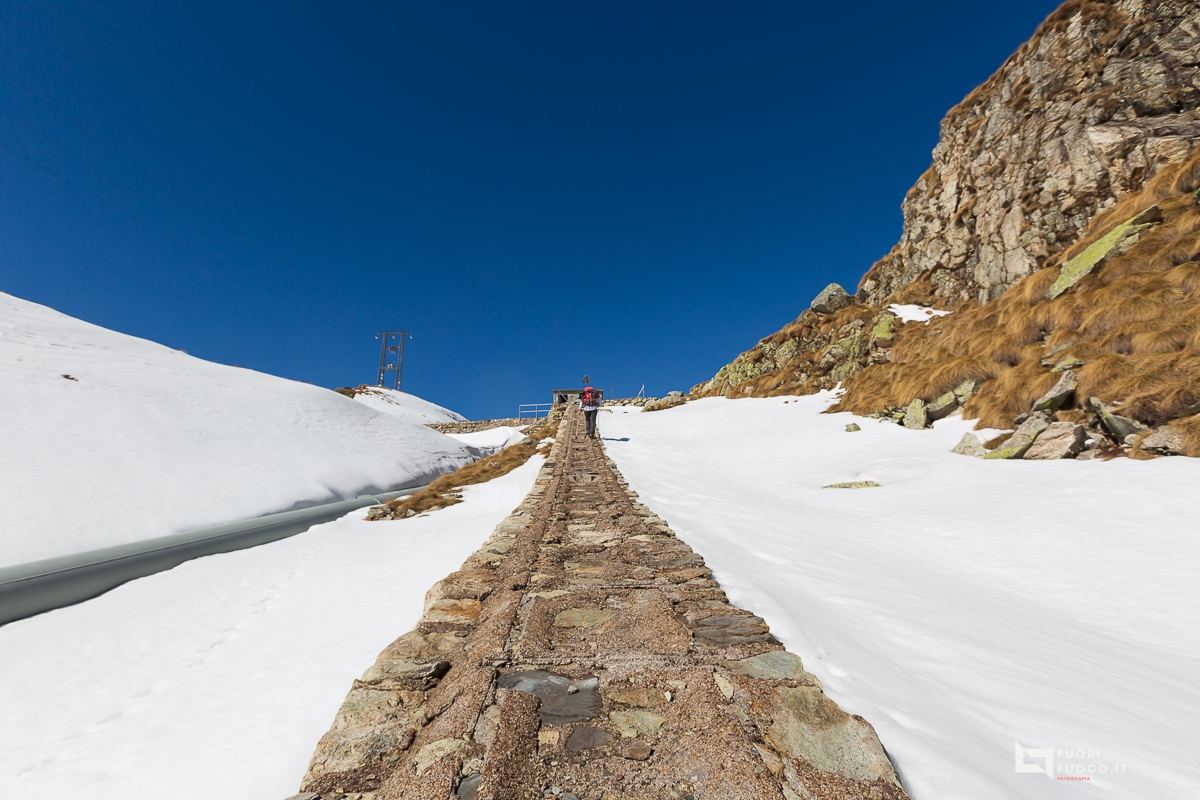 Successivamente si prosegue a sinistra, cioè in direzione ovest, su per una salita che, poco più in alto, porta alla diga del lago Nero.