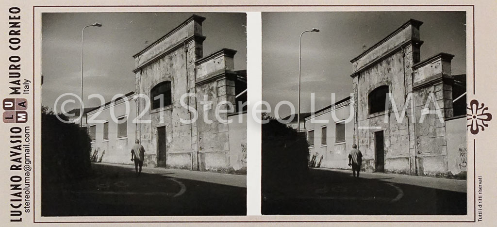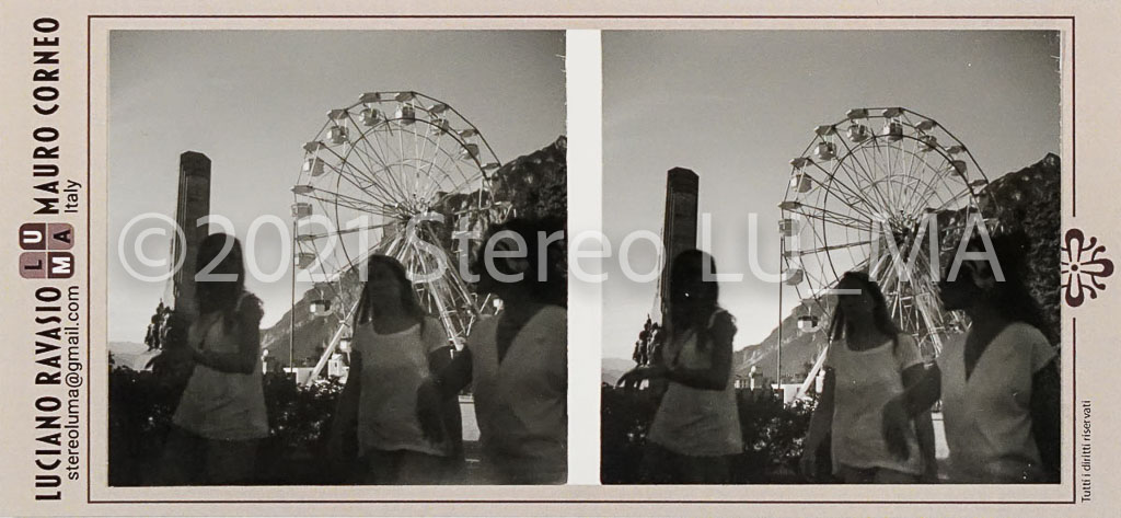 Immagini realizzate con fotocamera stereoscopica GOMZ Sputnik, pellicola Ilford FP4 stampate su carta Ilford Warmtone, montate su cartoncino LU.MA formato immagini 56x56