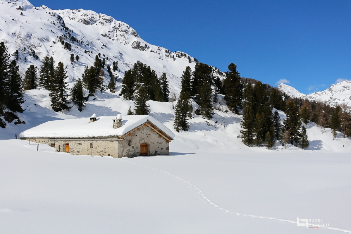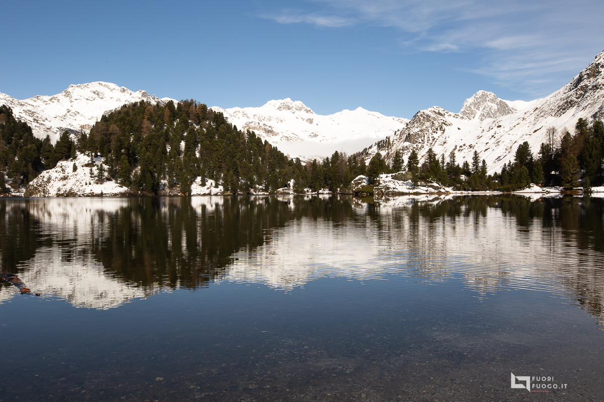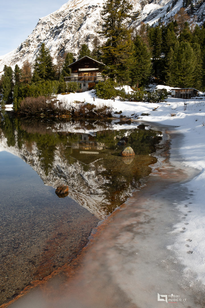 il Lej Cavloc ci regala moltissime angolazioni fotografiche e le sue acque cristalline ci permettono di comporre paesaggi riflessi particolari. Una breve sosta sul terrazo del rifugio conclude la mia escursione, (segnata per altro da un infortunio al 70/200 ) . Il ritorno al Maloja è possibile dalla stessa strada percorsa all’andata oppure con un giro ad anello, andando a incrociare il lago Bitabergh. Opto per un ulteriore variante girando attorno al lago, prendendo il sentiero per l’anello, ma poi tenenedo la destra ad incrociare più a valle la strada del mattino.