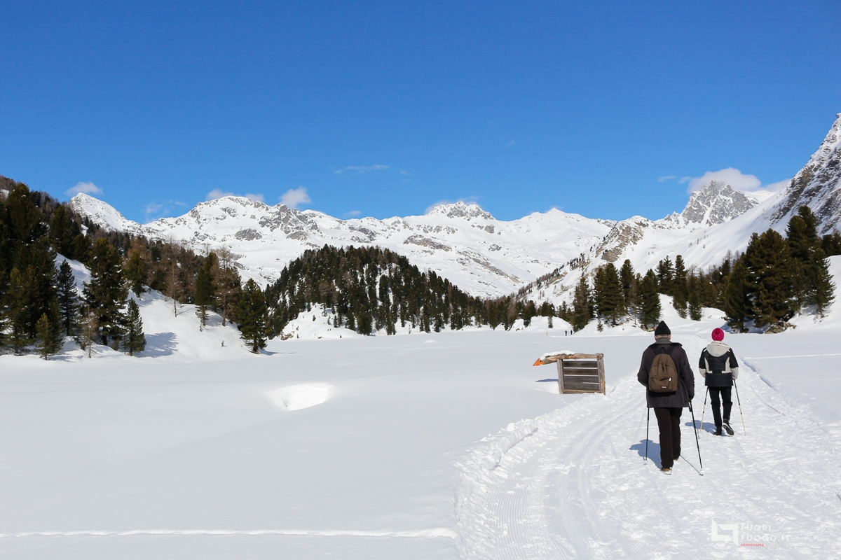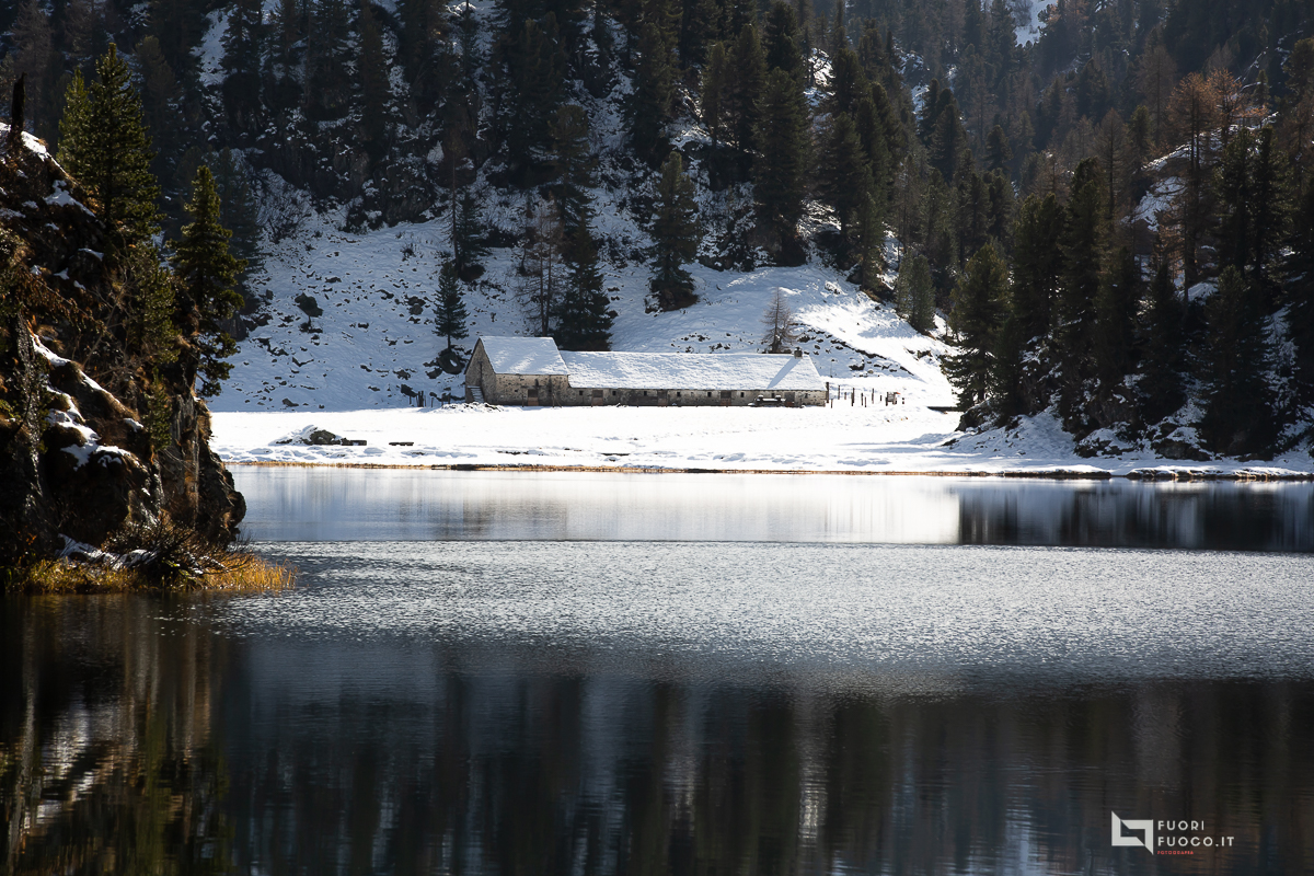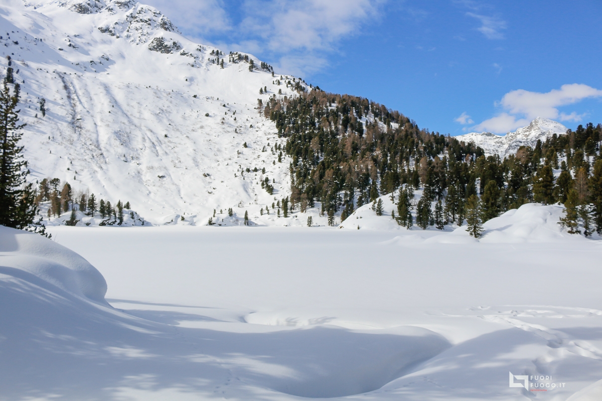 Quasi come un miraggio ad un certo punto si intravede il Lej Cavloc, che specchia in maniera eccezionale le vette circostanti, li a fianco vi è anche un rifugio (chiuso) che funge da ristoro nella stagione estiva. Il lago val bene il suo giro, ben segnalato da cartelli segnavia, che si compie attraversando ponticelli in legno, gia coperti dalla neve.