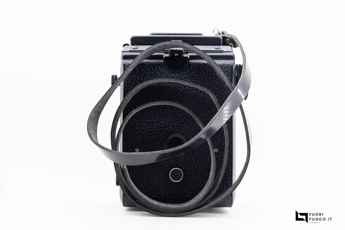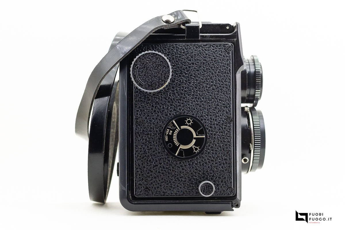 L’avvolgimento del film è possibile da una manopola nera sul lato destro della fotocamera.