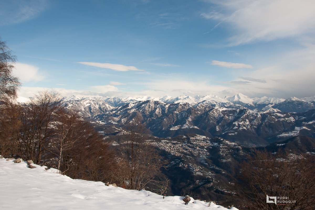 A nord la valle Imagna, parte della Val Brembana (dal pizzo dei Tre Signori al pizzo del Diavolo di Tenda) e alcune vette della Valtellina, oltre che altre cime delle Orobie tra cui il pizzo Arera.