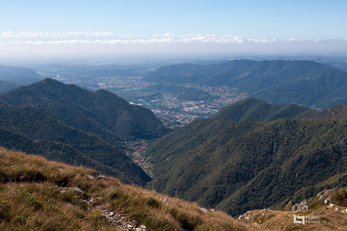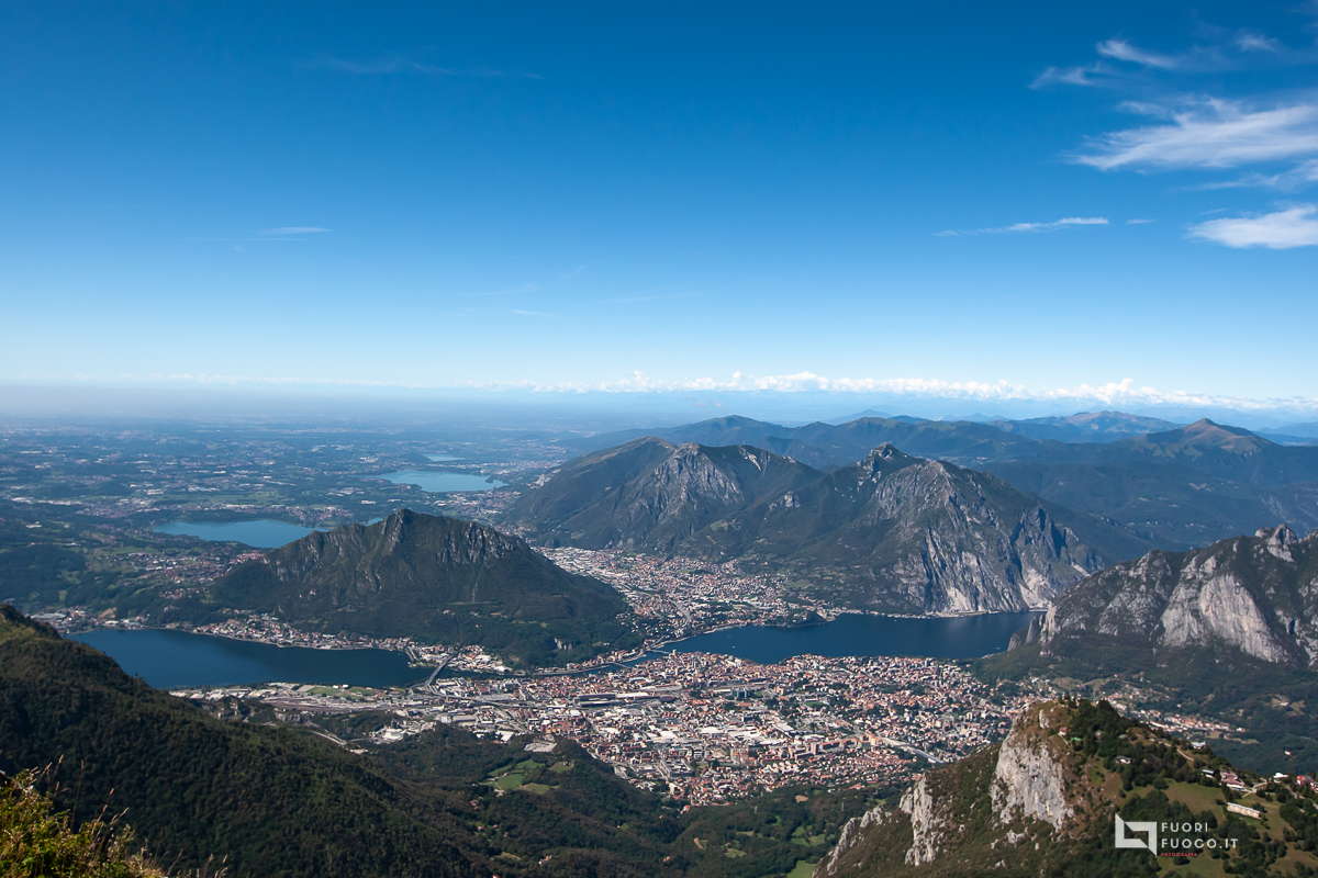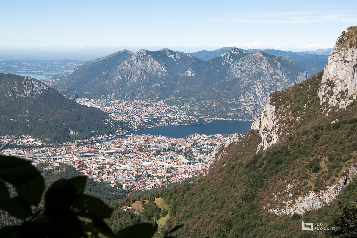 Mi incammino e dopo una decina di minuti di fitto bosco rieccomi all’aperto, il paesaggio e’ subito suggestivo, alla mia destra ammiro Lecco con il suo lago, i laghi di Annone, Pusiano e Montorfano.