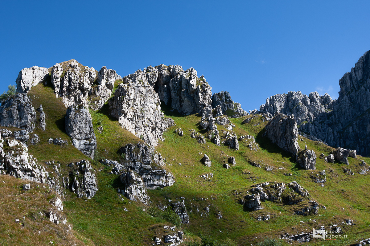 scendo dalla parte opposta, verso Brumano, il sentiero e’ facile ma non sempre molto agevole, mi dirigo verso l’acqua delle Forbesette, per poi risalire al Passo del giuff e far rientro al Erna, il tutto con varie soste per le immagini, due chiacchiere e lo spuntino e’ durato circa 3 ore e mezza.