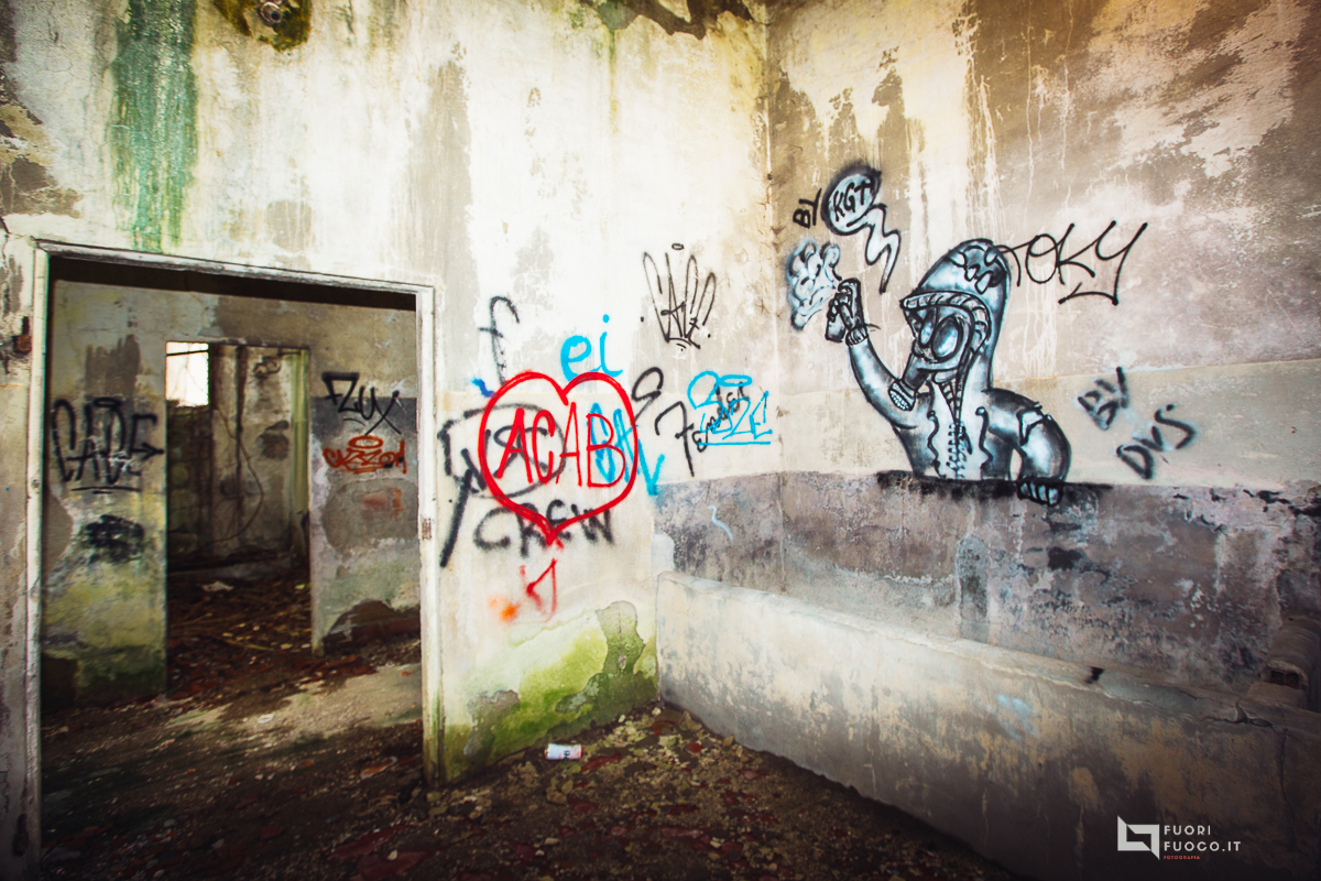 All’interno muri certamente scrostati ma tuttavia rinfrescati da visioni oniriche e dai soggetti quantomeno inquietanti nella loro rappresentazione pittorica.