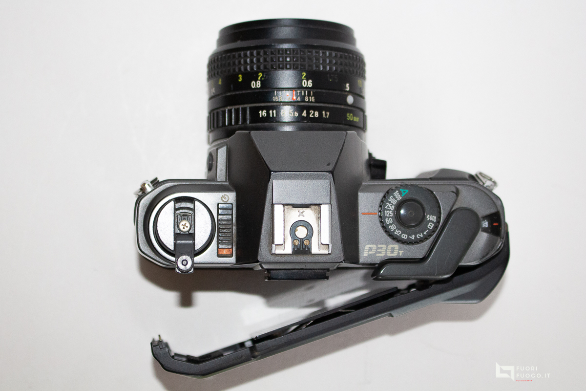 Il corpo macchina interamente in metallo dona alla P30 una sensazione di grande robustezza e solidità, unità però come dicevo prima ad un design che ancora oggi la rende simile alle moderne reflex digitali.
