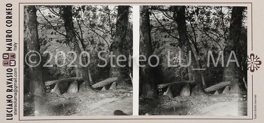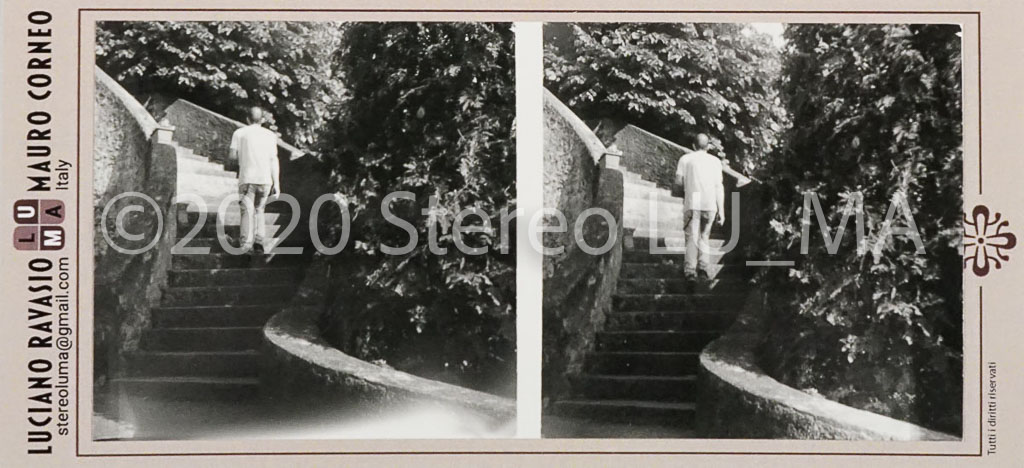 Immagini realizzate con fotocamera stereoscopica GOMZ Sputnik, pellicola Rollei Superpan 200 stampate su carta Rollei Vintage 311 Glossy, montate su cartoncino LU.MA formato immagini 56x56