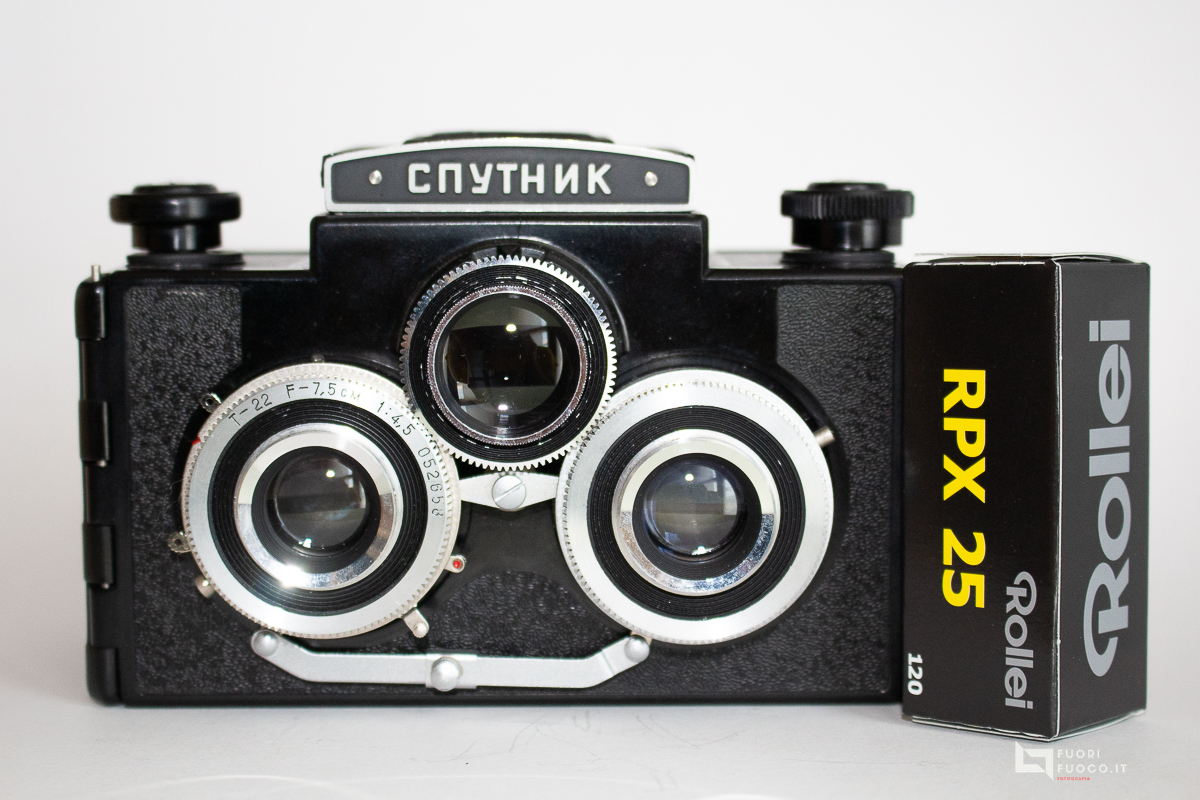 Lo Sputnik è una fotocamera stereo reflex a doppia lente di medio formato introdotta intorno al 1955.