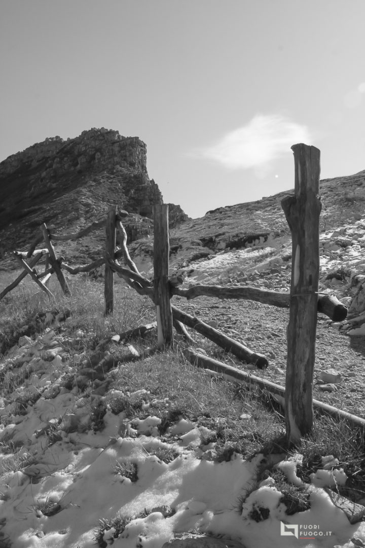 Attraversa praticamente il versante meridionale del monte, situato al riparo naturalmente dal tiro dell’artiglieria austro-ungarica, caratterizzato da guglie, gole profonde e pareti rocciose a perpendicolo.