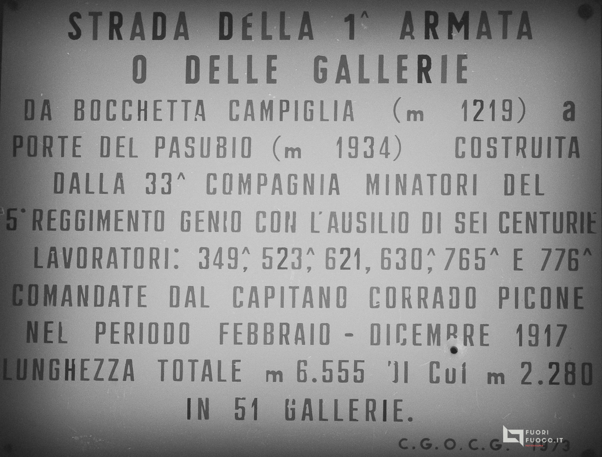 Inoltre nel 1991 è stato apposto nome e numero all’ingresso di ciascuna di esse. Le dediche alle gallerie, ad eccezione delle gallerie 49 e 50, sono state assegnate nel 1917 dal capitano Picone.