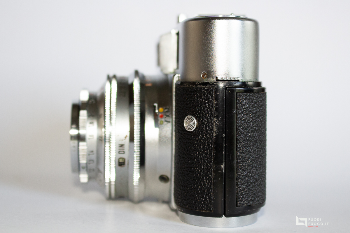La Voigtlander II monta un ottica Color-Skopar 1:2,8/50 e l’otturatore.