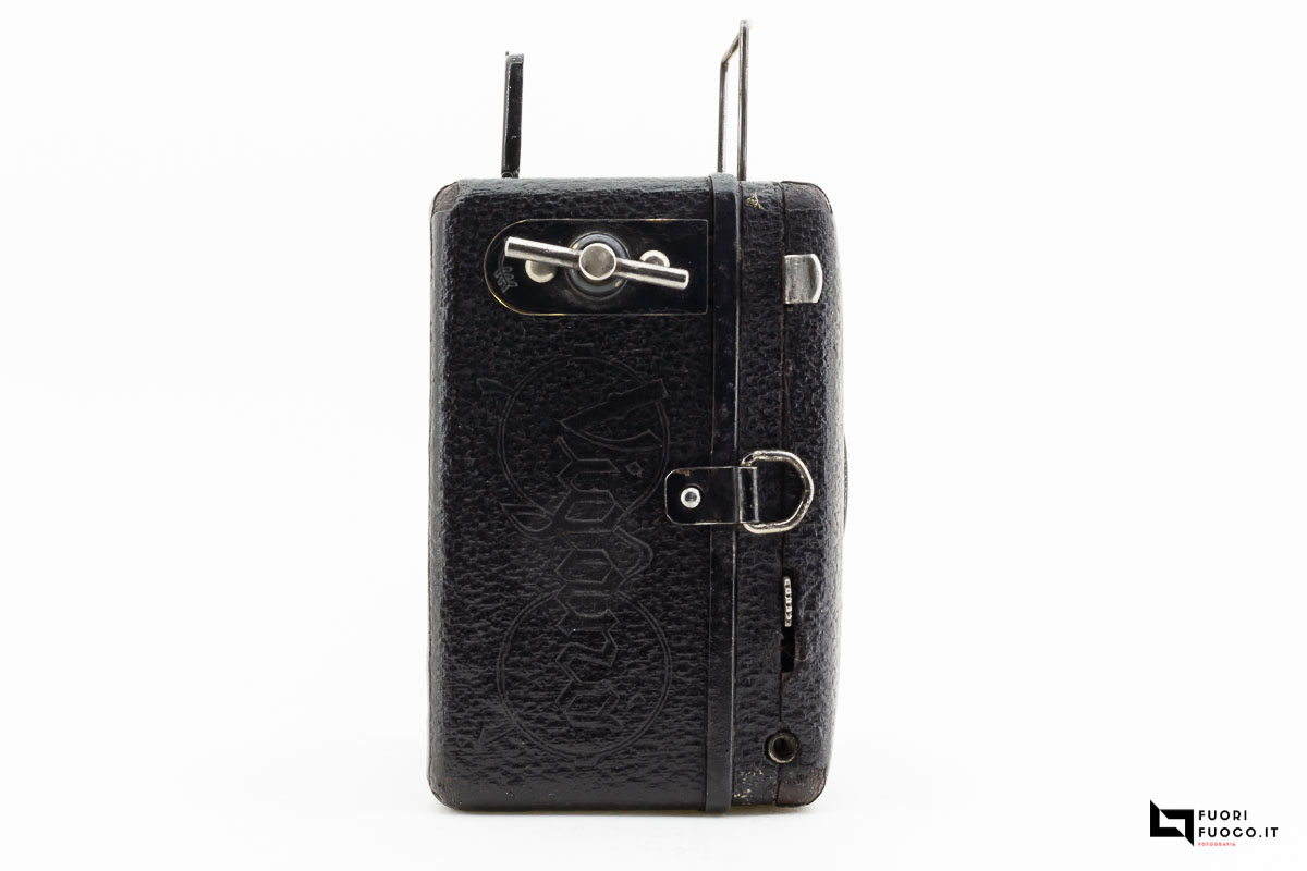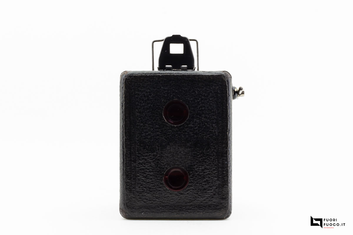 Sul retro della fotocamera due finestrelle rosse  permettono il controllo dell’avanzamento della pellicola.