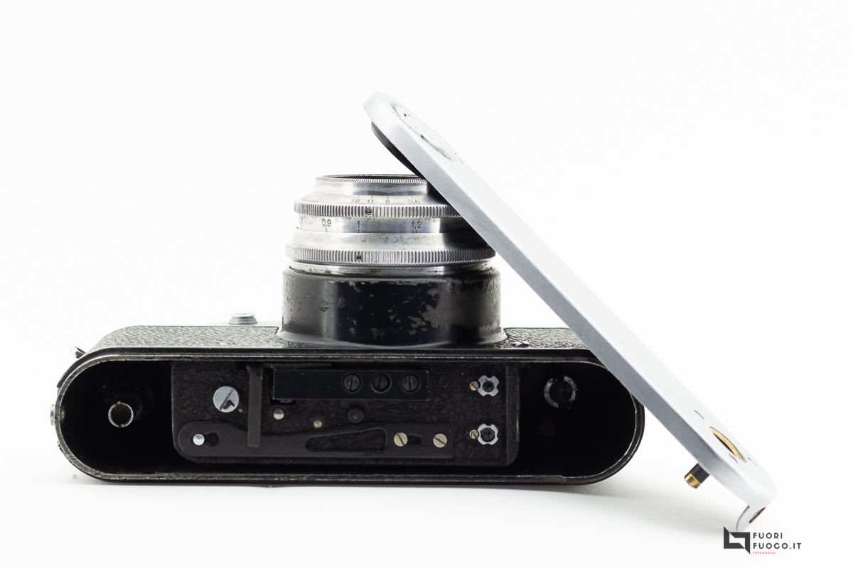 la pellicola viene caricata rimuovendo la base della fotocamera, non aprendo il retro.